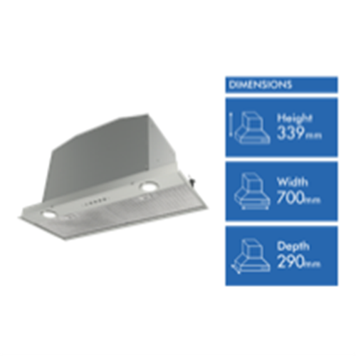 Bring a sleek modern look to your kitchen with the Smeg 70cm Undermount Rangehood. This stainless steel undermount rangehood features a width of 700mm and boasts an impressive 690m3/hr extraction capacity to effectively remove cooking odors smoke grease and more. With intuitive push button controls 3 fan speeds and near-silent operation at just 50-67 decibels you can count on whisper-quiet ventilation day or night. The integrated LED lights illuminate your cooktop brilliantly while the dishwasher safe filters make cleaning and maintenance a breeze. Designed for ducted installation this rangehood also includes 2 stainless steel grease filters to trap grease and keep your kitchen fresh. Bringing together high performance easy operation and stylish Italian design the Smeg Undermount Rangehood makes a valuable addition to any modern kitchen. The manufacturer's part number for this product is SHU770X. Check out this impressive 70cm undermount rangehood today.