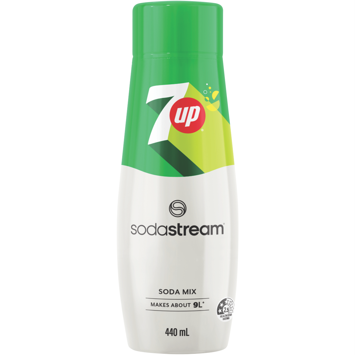 Add fizz to your favourite soft drink with the Sodastream 7Up Flavour Mix. This 440ml bottle of concentrated syrup infuses 9 litres of Sodastream sparkling water with the crisp lemon-lime taste of 7Up for a refreshing homemade soda. Just add bubbles and enjoy the great taste of the classic lemon-lime soda you love made fresh at home. With Sodastream and 7Up you can create a sparkling beverage free of artificial sweeteners and preservatives. The concentrated 7Up syrup contains no caffeine so the whole family can enjoy it any time. Customize the sweetness to your taste by adding more or less sparkling water. Make entertaining easy with fresh fizzy 7Up straight from your Sodastream machine. The manufacturer's part number for this product is 1924203610. Bring home the refreshing lemon-lime taste of 7Up with Sodastream.