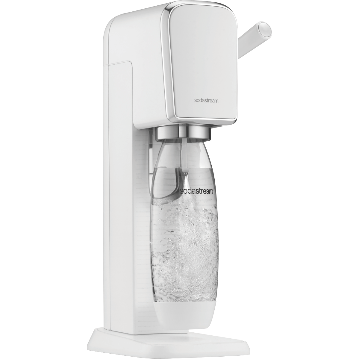 Fizz your water in style with the Sodastream Art White Sparkling Water Maker 1013511610. The Art comes with Sodastream's amazing Quick Connect gas cylinder installing with just one click from inserting no twisting required. Sink into the Spark Design Awards winning design with stainless steel trimmings and precise control thanks to a retro carbonating lever. Easily fit it anywhere around the house thanks to cordless operation and an included dishwasher safe bottle means clean up is easy. Soda your own cordials iced teas syrups and more*. * Disclaimer: Sodastream makers only support the carbonation of water into soda water with syrups/mixers added afterwards. Do not attempt to carbonise other liquids in Sodastream makers.