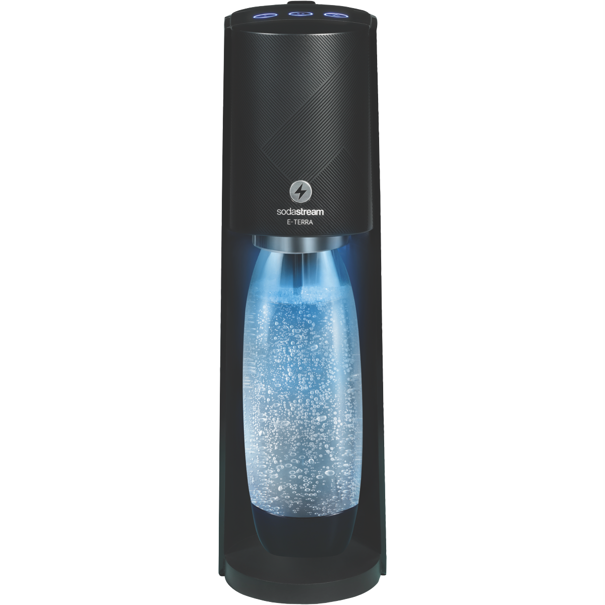 Bring some sparkle to your day with the Sodastream E Terra Black Sparkling Water Maker. This sleek and stylish soda maker lets you create delicious carbonated drinks at home with just the push of a button. The 1L bottle is dishwasher safe for easy cleaning while the three carbonation levels let you customize your fizz. Plus the LED electric carbonation and patented Quick Connect system make it a breeze to use. You'll love the convenience of having fresh sparkling water on tap. Comes with a 2 year manufacturer's warranty. 1012911611.