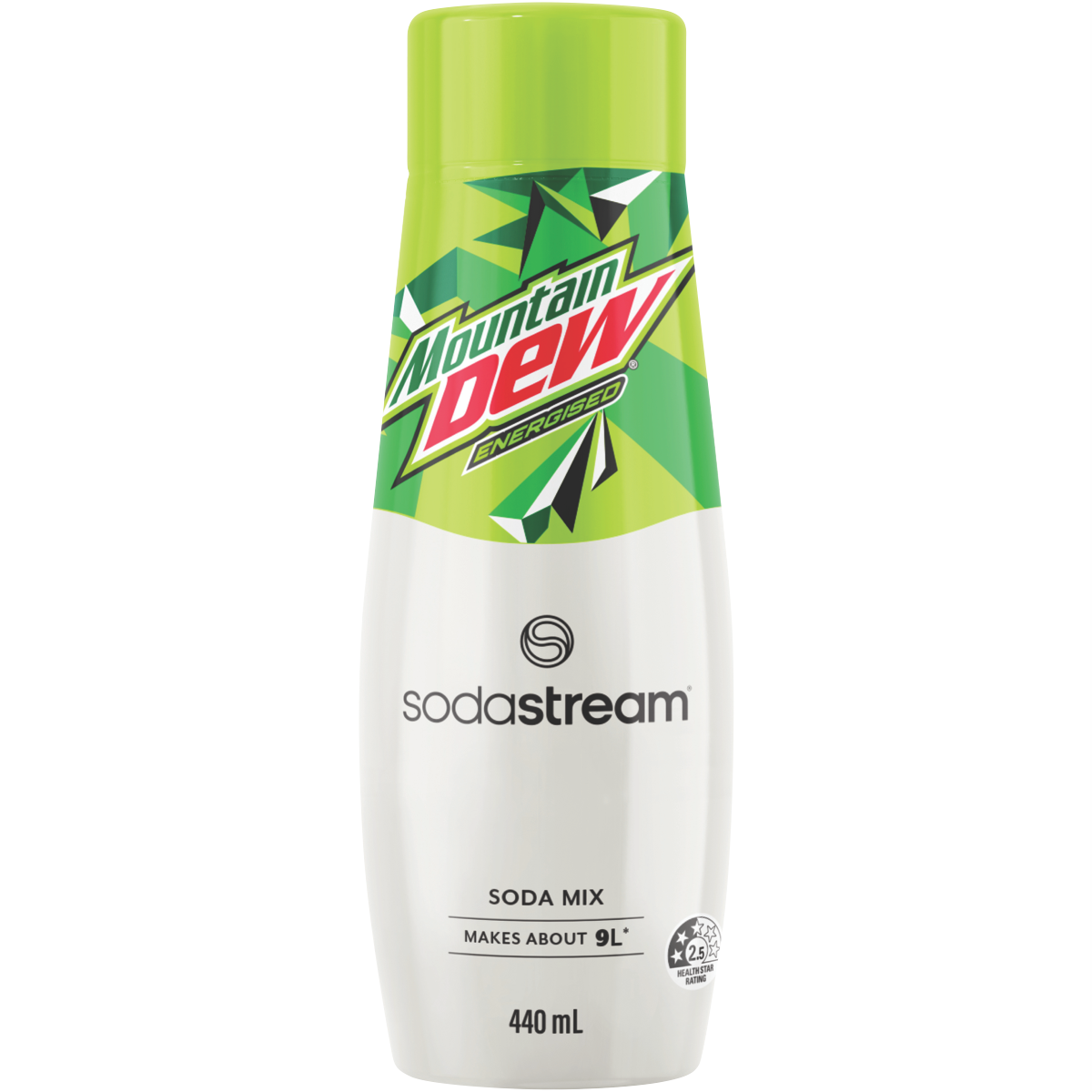 Additional Features Each Flavour Bottle makes 9 Litres, Great Taste, Just add Bubbles, Mountain Dew Energised for Sodastream,