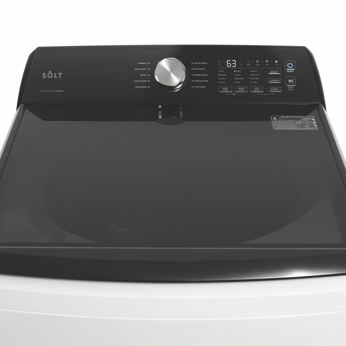 Introducing the Solt 10kg Top Load Washer your reliable laundry companion designed to simplify your washing routine. With a generous 10kg washing capacity this top-loading washing machine effortlessly handles large loads making it perfect for busy households. The white mark-proof finish ensures a sleek and durable exterior that complements any laundry space. Boasting 10 versatile washing programs including Normal Heavy Duty Bulky Activewear Cold Wash Quick Wash Delicates Rinse & Spin Drain & Spin and Tub Clean this Solt washer caters to all your laundry needs. Customize your wash with 4 temperature selections and automatic or manual water level options. The 800rpm maximum spin speed effectively removes excess water reducing drying time. Equipped with convenient features like a delay start function child safety lock and a memory function that resumes the cycle in case of power interruption this washer offers both convenience and peace of mind. The stainless steel drum ensures durability while the soft close black glass lid adds a touch of elegance. The manufacturer's part number for this product is GGSTLW100RCW. Experience the efficiency and reliability of the Solt 10kg Top Load Washer in your laundry routine today.