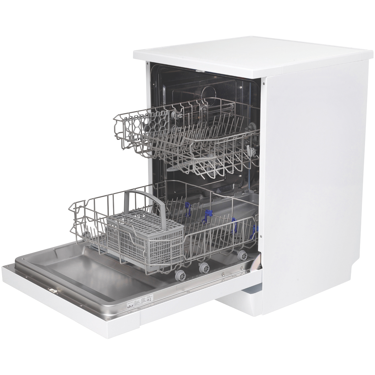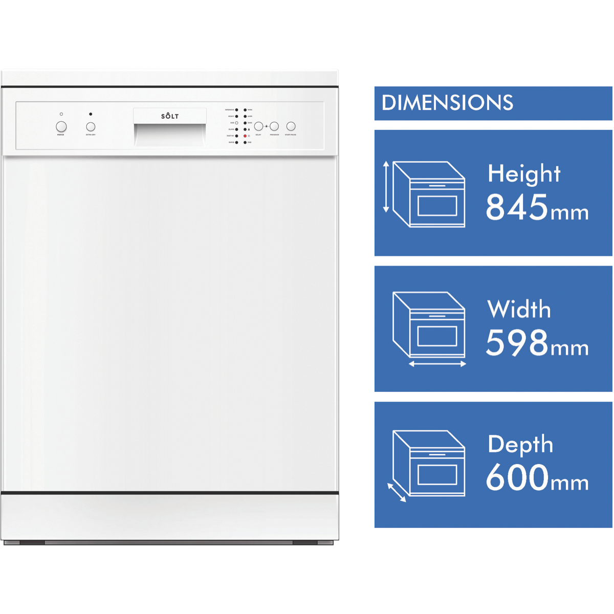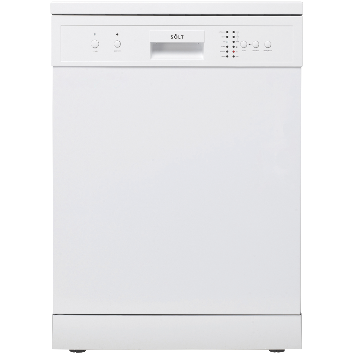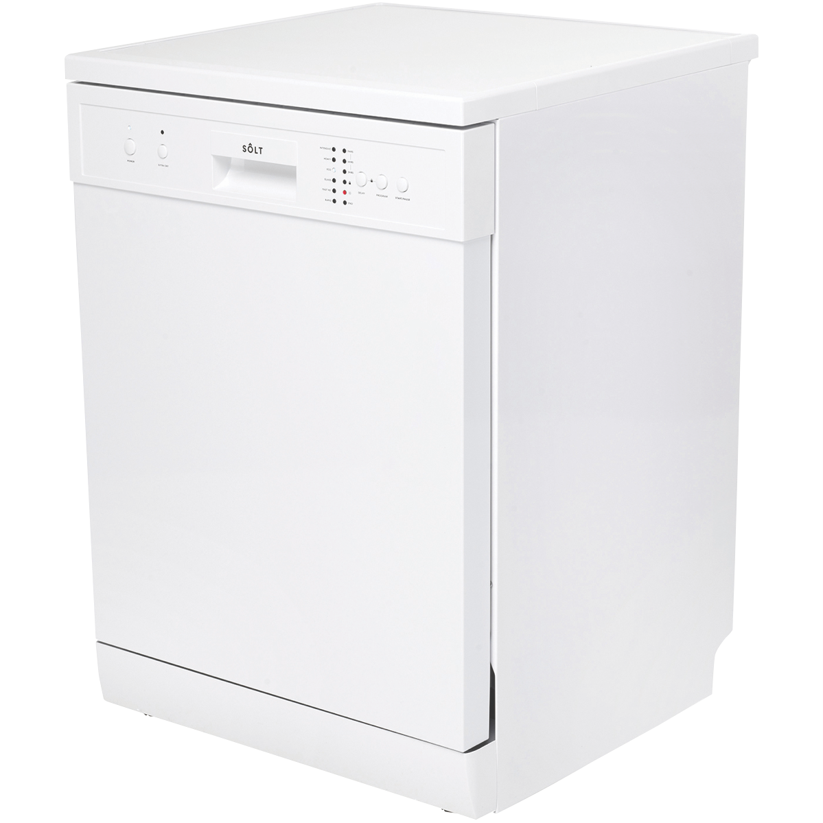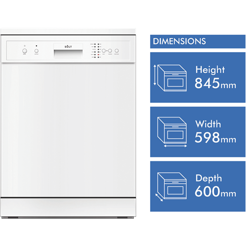 This Solt 60cm Freestanding Dishwasher - White GGSDW6012W offers a 12-place setting capacity with a height-adjustable upper basket so you can easily load and wash lots of dishes. Minimise your water usage with its 4.5 Star WELS Water Rating WELS licence number D02521 utilising just 10.7 litres per wash when running the 'ECO' program. Select from six wash programs to cover all your cleaning needs: from an 'Intensive' wash for heavily soiled plates to 'Rapid' for a lower temperature wash and reduced cycle time when items are only lightly soiled. Plus the Extra Drying option is available on selected wash cycles such as 'Glass' to get a perfectly dry finish on your glassware. With its freestanding design you can enjoy the flexibility of setting up your dishwasher where you want to thanks to this Solt dishwasher available exclusively at The Good Guys.