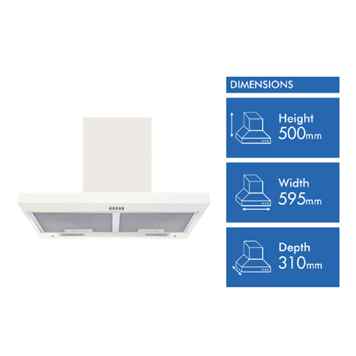 Inspire your modern kitchen with the Solt 60cm Integrated Rangehood in crisp white. This sleek hood makes short work of steam grease and cooking odours thanks to extraction at an impressive 1000 cubic meters per hour. The two LED lights illuminate your cooktop brightly while the intuitive push button controls let you cycle through the three fan speeds with ease. Both ducted and recirculating options give you flexibility for installation while the dishwasher safe aluminium grease filters keep maintenance fuss-free. With a low noise rating of 70 decibels you can have quieter cooking. This rangehood measures 595mm in width 500mm in height and 310mm in depth for a perfect built-in fit above your cooktop. Solt's integrated rangehood comes with a 3 year manufacturer's warranty so you can cook with confidence for years to come. Bring a stylish focal point to your kitchen with the Solt Integrated Rangehood in White - order yours today.