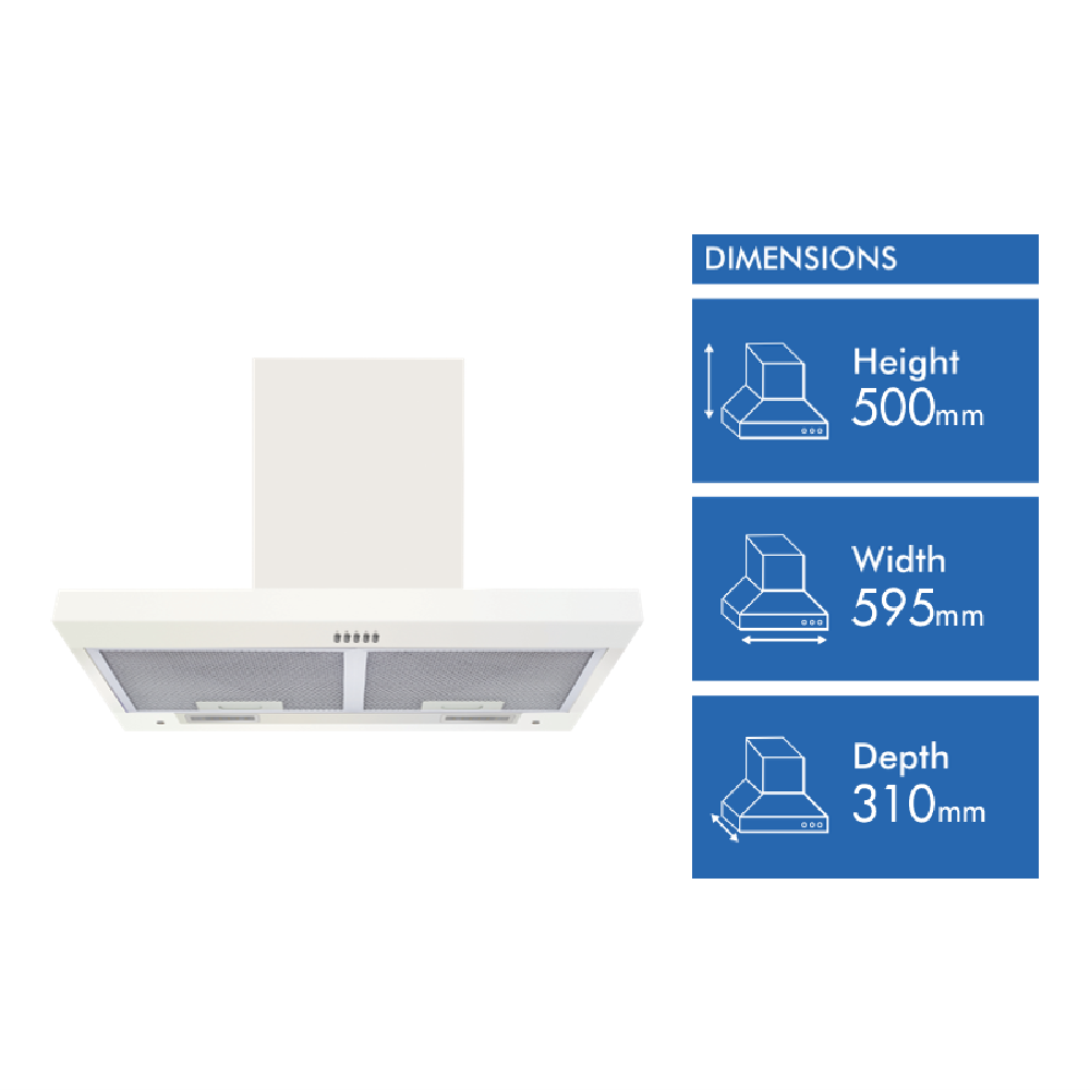 • 60cm ducted and recirculating with 2 LED lights