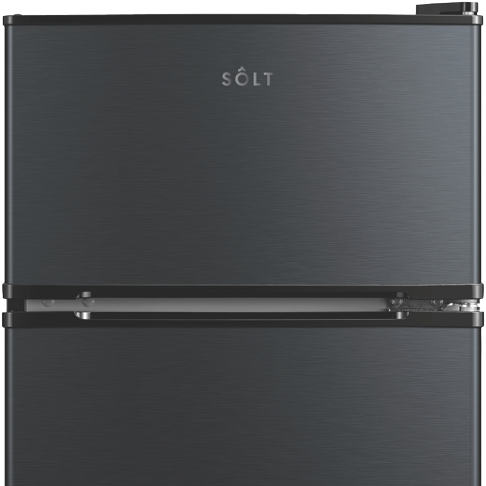 With its sleek black finish and compact design this 87L Solt bar fridge is the perfect addition for any home bar or kitchen. The spacious 61L fridge capacity features two removable glass shelves and a crisper drawer to keep fruits and vegetables fresh while the 26L freezer has ample room for ice cubes and frozen treats. The adjustable thermostat lets you customize the temperature and the reversible door with durable exterior can open from either side to suit your space. Enjoy the convenience of 5 door storage trays for cans condiments and more. And when it's time to clean up the recessed handles provide a seamless look. Backed by a 2 year manufacturer's warranty the Solt 87L bar fridge with Manufacturer Part Number GGSBF91DS is a reliable choice.