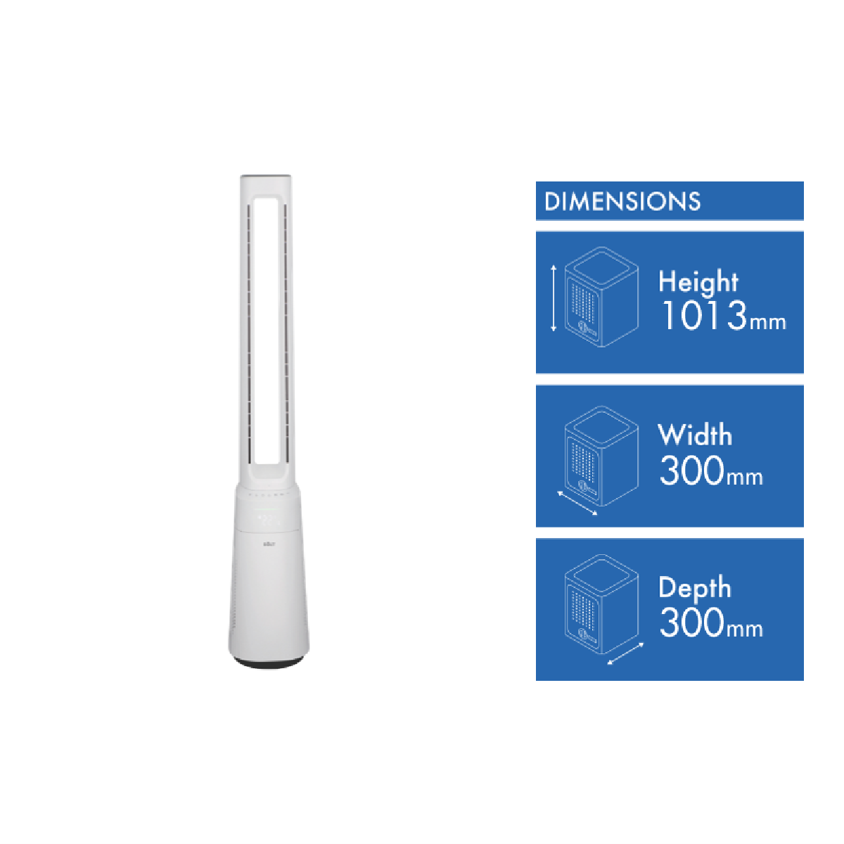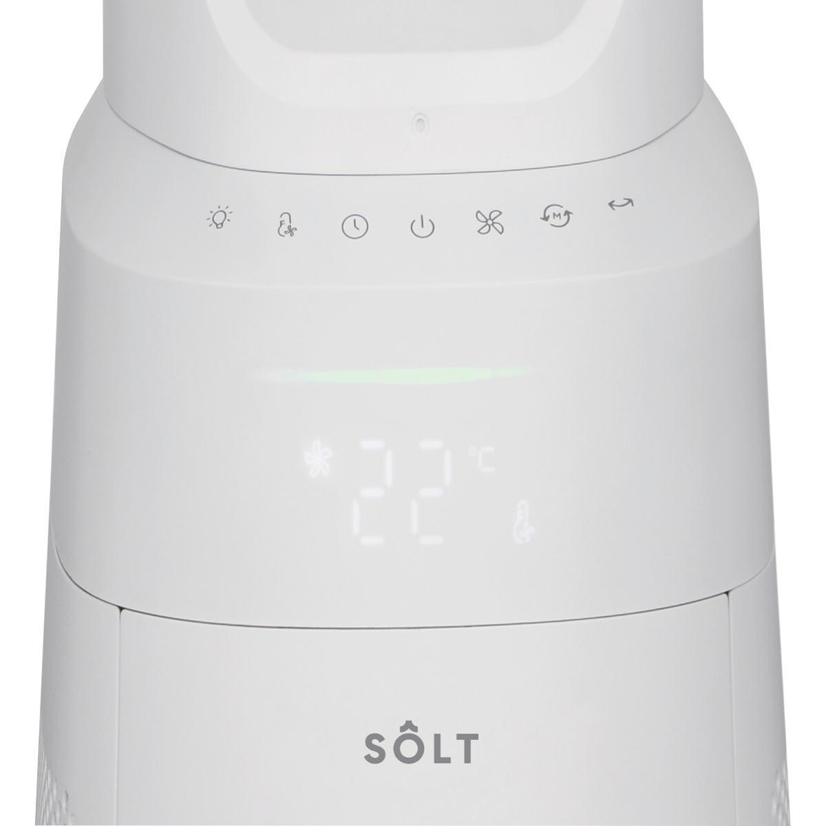 Breathe easy with the Solt Bladeless Fan with Air Purifier. This sleek white unit combines powerful air circulation with a 3-stage HEPA filtration system to keep your space fresh and comfortable. Choose from four settings Normal Sleep Auto Wind and Baby Wind to customize your experience. The convenient remote control and 60° oscillation let you adjust the airflow effortlessly. Measuring 300 x 1013 x 300 mm and weighing just 3.7 kg it's a breeze to place in any room. Plus enjoy peace of mind with a 2-year manufacturer's warranty. Bring home the GGSBFAP4W10W and breathe better today.