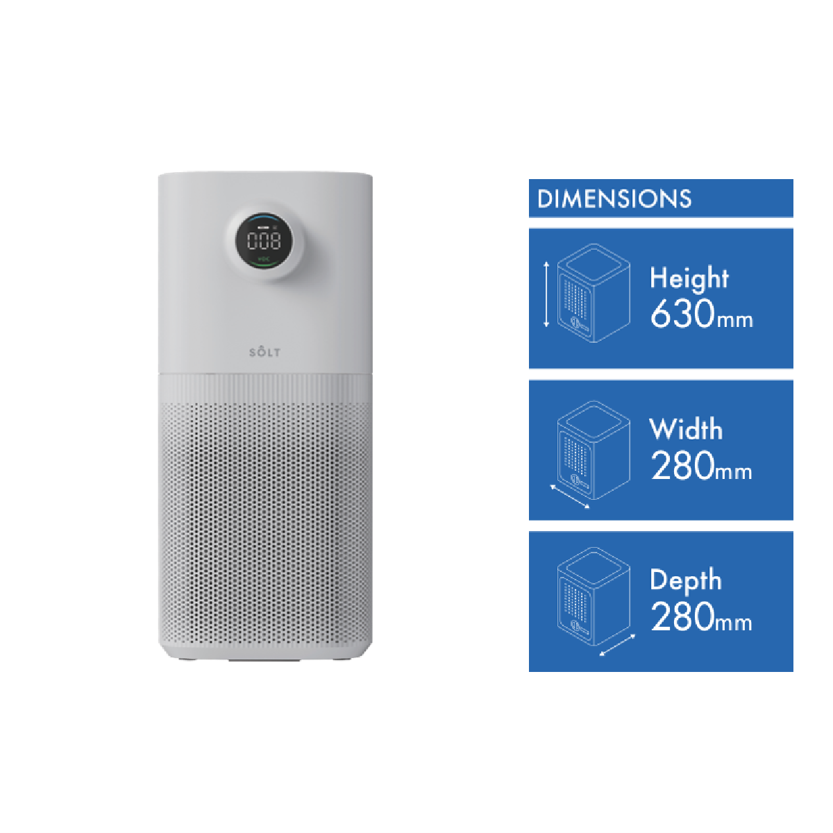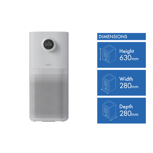 The GGSPA500W delivers a 500m³/h CADR rating perfect for large rooms up to 60m². Its H13 True HEPA filter captures 99.97% of allergens odours and bacteria making it ideal for tackling dust pet hair smoke and pollen.Featuring the Air360 System LED air quality display and digital touch controls it ensures easy efficient operation. With three speeds plus Auto Turbo and Sleep modes as well as a timer and filter reminders it s the perfect solution for Australian homes and offices.