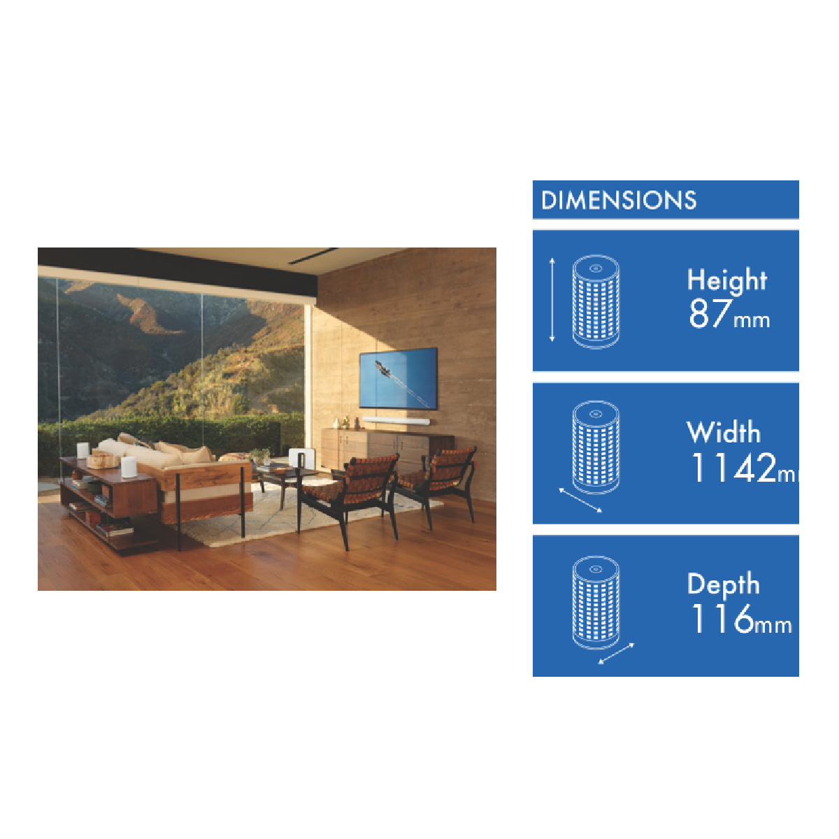 Immerse yourself in the ultimate cinematic sound experience with the Sonos Arc White sound bar. This sleek 11-channel sound bar delivers rich room-filling audio thanks to Sonos' patented acoustic technology. With built-in voice control via Google Assistant and Amazon Alexa you can play music get answers and control your smart home - all hands free. Connect via WiFi and AirPlay 2 to stream all your favorite entertainment. At just 87mm tall it fits perfectly below your wall-mounted TV without blocking the picture. With a 1-year warranty and a manufacturer's part number of ARCG1AU1 the Sonos Arc White sound bar is the perfect audio upgrade for any home theatre. Experience movie magic today.