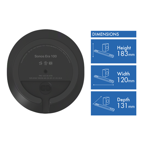 With its sleek black design the Sonos Era 100 wireless speaker will fill any room in your home with rich immersive sound. This Bluetooth and Wi-Fi enabled speaker effortlessly streams all your favorite music podcasts and more from services like Spotify Apple Music and Amazon Music. Controlled completely through the Sonos app the Sonos Era 100 allows you to listen to different songs in different rooms or group multiple speakers together for a multi-room listening experience. The speaker's capacitive touch controls let you easily play pause or skip tracks right on the device. Designed to withstand humidity this durable speaker can be used in the bathroom or outdoors. And with built-in Amazon Alexa and Apple AirPlay 2 compatibility you can use your voice to operate the speaker hands-free. So whether you're hosting a dinner party or just relaxing at home the Sonos Era 100 speaker delivers bold balanced audio and seamless wireless connectivity. Let this sleek smart speaker fill your home with music you'll love. The manufacturer's part number for this product is E10G1AU1BLK. Bring home rich immersive sound with the Sonos Era 100 today.