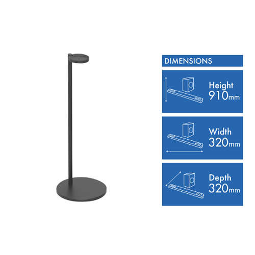 Elevate your Sonos Era 100 speaker and amplify your listening experience with the sleek Sonos Era 100 Stand. Crafted from durable steel with a modern matte black finish this stand securely holds your Sonos Era 100 speaker at an optimal angle for room-filling sound. Measuring 910mm high 320mm wide and 320mm deep the stand adds minimal footprint to your space while putting the speaker front and center. The stable weighted base prevents tipping while the cable management system keeps wires neatly hidden. Whether you place it on a console table or desktop this stylish stand showcases your speaker and complements any decor. Designed for seamless setup it pairs perfectly with the Sonos Era 100 enhancing sound projection throughout your living room kitchen bedroom or office. Treat your ears to richer audio and your eyes to a contemporary audio statement. The manufacturer's part number for this product is E10FSWW1BLK.