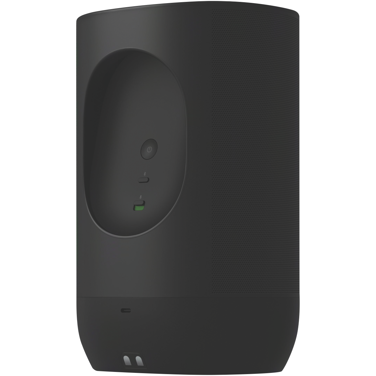 Bring powerful room-filling sound wherever you go with the Sonos Move 2 portable smart speaker. With Wi-Fi and Bluetooth connectivity you can stream all your favorite music radio podcasts and more at home or on the move. Despite its compact size the Sonos Move 2 delivers bold detailed audio thanks to two Class-D amplifiers that pump out 45 watts of pure faithful sound. Automatic Trueplay tuning optimizes the output to match any environment. So whether you're lounging on the patio or kicking back at camp you'll enjoy rich nuanced audio that faithfully reproduces every note. With AirPlay 2 support you can also stream sound seamlessly from Apple devices. And you can control it all easily using the intuitive Sonos app. In black with a durable polycarbonate shell the Sonos Move 2 blends right into any decor. It even has an IP67 rating making it resistant to dust water and moisture. So your tunes can follow you virtually anywhere. When it's time to recharge just set it on the included charging base. Compact yet powerful the Sonos Move 2 gives you great wireless sound wherever life takes you. The manufacturer's part number for this product is MOVE2AU1BLK. Learn more about the capabilities of the Sonos Move 2 smart speaker.
