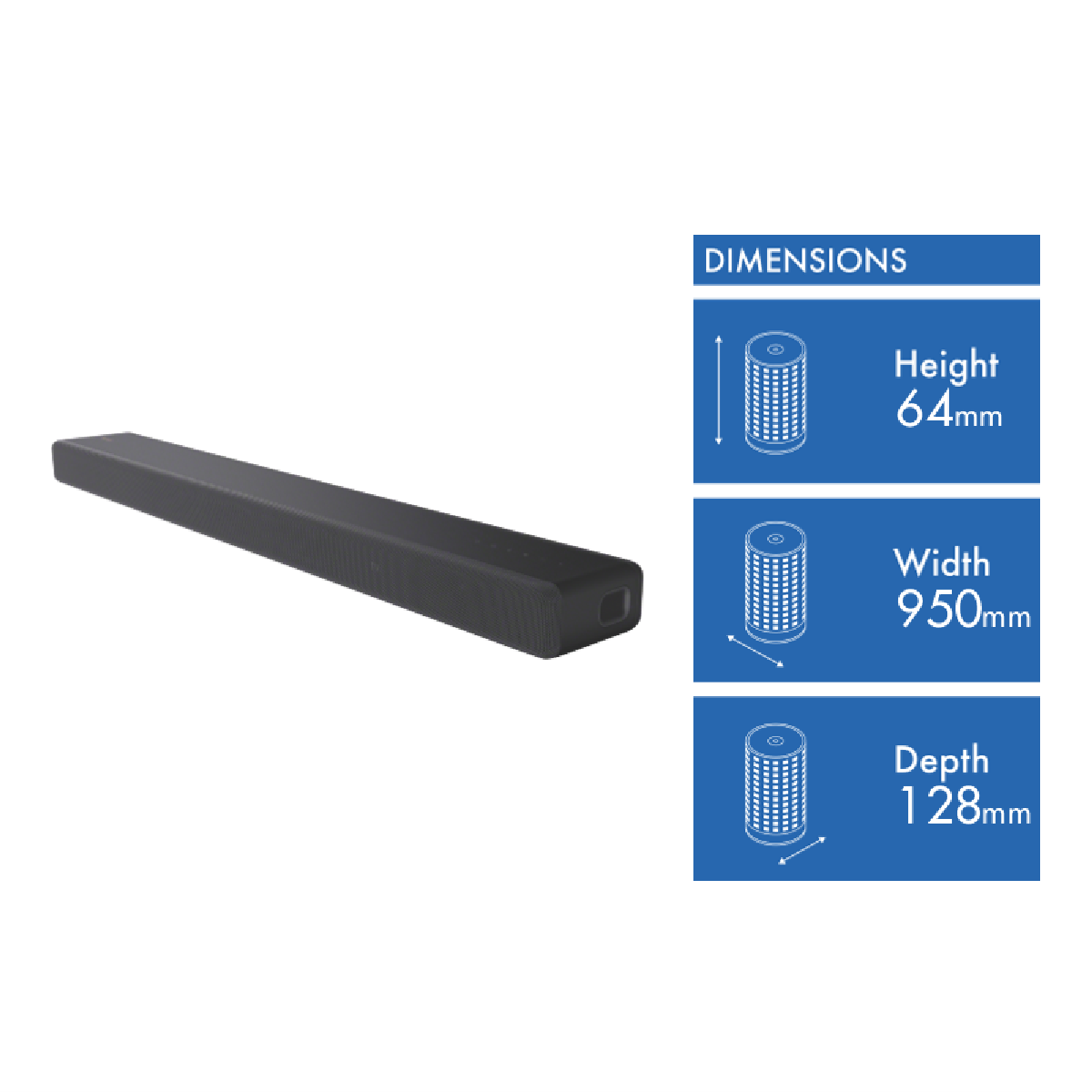 Experience immersive sound with Sony Compact 3.1-inch Dolby Atmos Soundbar HT-A3000. The five built-in speakers with three front facing speakers and two front facing subwoofers allows you to enjoy the thrill of Dolby Atmos and DTS:X creating your own home cinema experience. The unique 360 Spatial Sound Mapping technology creates multiple phantom speakers which generate a multi-dimensional sound similar to the cinema's sound. With Google Assistant and Amazon Alexa built-in you can simply use your voice to control the soundbar or stream directly from your smartphone via Bluetooth Wi-Fi Chromecast or Apple Airplay 2. Add an optional subwoofer or wireless rear speakers (both sold separately) to create an immersive seamless audio experience.