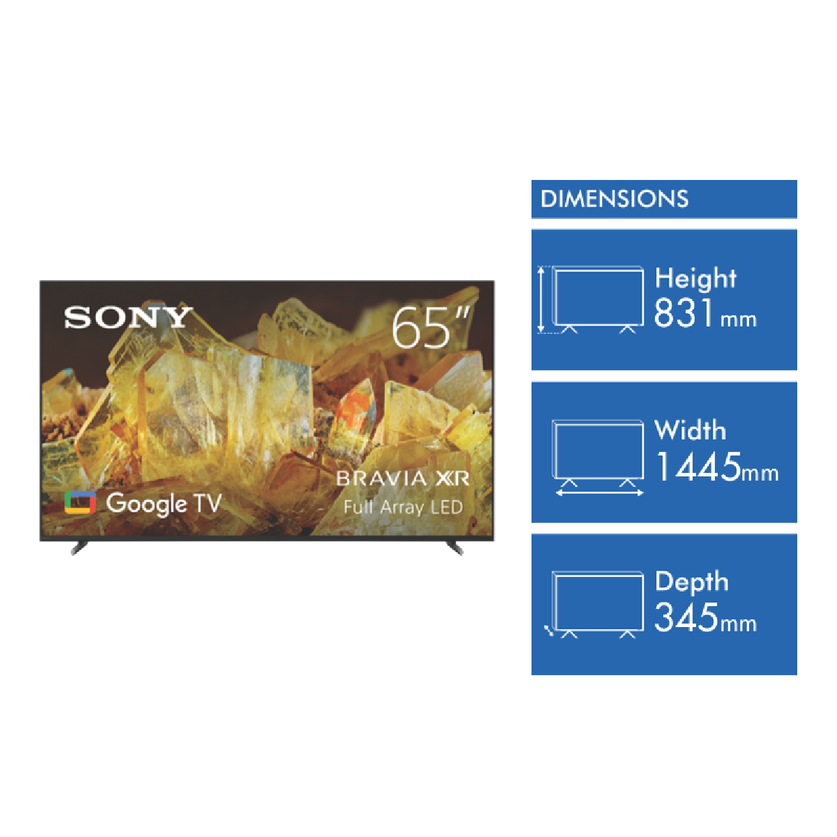 Immerse yourself in breathtaking 4K HDR picture quality with the Sony 65 X90L BRAVIA XR Full Array LED Google TV. This 2023 model features Sony's Cognitive Processor XR which uses intelligent analysis to deliver intense contrast with pure blacks high peak brightness and natural colors. Powered by the Google TV smart platform you'll have access to all your favorite apps like Netflix Disney+ YouTube and more. With Full Array Local Dimming Dolby Vision HDR and Dolby Atmos sound movies and shows burst to life in incredible detail. Designed for gaming this TV has HDMI 2.1 ports 120Hz refresh rate and ultra-fast response time. The sleek minimalist design looks great in any living room. With voice control and Google Assistant built-in you can search for content get answers and control smart home devices completely hands-free. Rated 4 stars for energy efficiency in Australia. The manufacturer's part number for this product is XR65X90L. Check out this immersive 4K LED TV today.