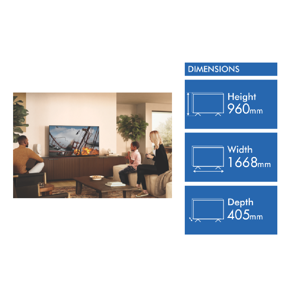 Experience stunning visuals and immersive entertainment with the Sony 75 BRAVIA 7 4K Mini-LED Google TV 24. This 75-inch ultra HD TV boasts a Mini LED screen with 3840 x 2160 resolution delivering breathtaking 4K UHD clarity and vibrant colors enhanced by Quantum Dot Technology. The powerful XR Processor ensures smooth motion with a 200 Motion Rate while the Google TV smart platform provides access to popular streaming apps like Netflix Stan Disney Amazon Prime and more. Enjoy hands-free voice control with the built-in voice assistant or use the remote to access Google Assistant. The TV supports various HDR formats including Advanced HDR HLG Dolby Vision and IMAX Enhanced for lifelike picture quality. Gamers will appreciate the gaming-ready features while the Full Range speakers with tweeters deliver immersive audio. With 4 HDMI and 2 USB inputs connecting your favorite devices is a breeze. The 4-Way Multi-Position Stand offers flexible placement options and the TV is VESA wall mount compatible (300 x 300 mm). Measuring 1668 mm wide 984 mm high and 405 mm deep this sleek TV will elevate any living space. The manufacturer's part number for this product is K75XR70. Upgrade your home entertainment experience with the Sony 75 BRAVIA 7 4K Mini-LED Google TV 24 today.