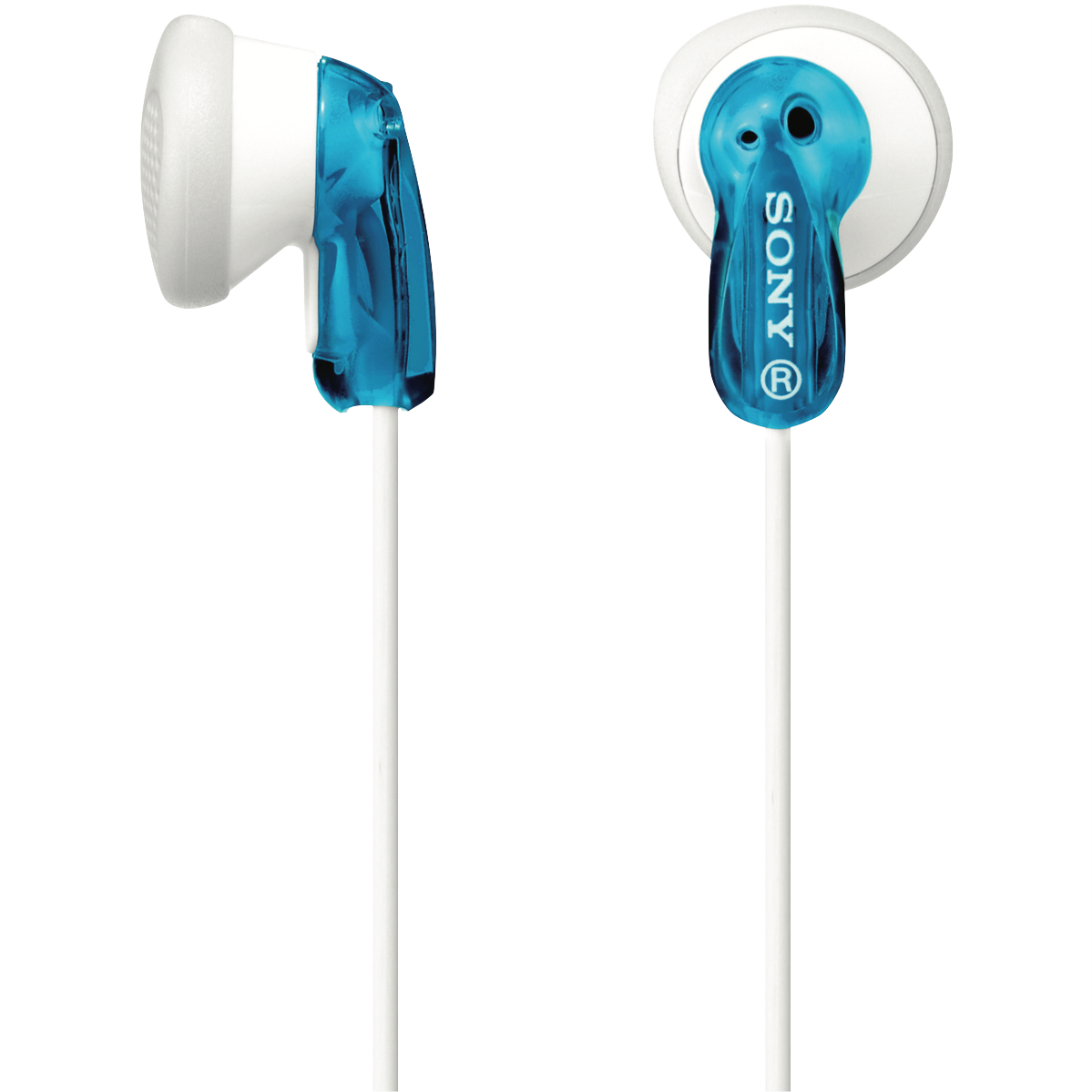 These blue Sony headphones are in-ear headphones. They have an earbud design so you can take them along inside your backpack purse or jacket. You can listen to resonant bass tones and clear highs with blue Sony MDRE9LPLs' 18 Hz - 22 kHz frequency response. You can escape from your daily cares thanks to these Sony headphones.