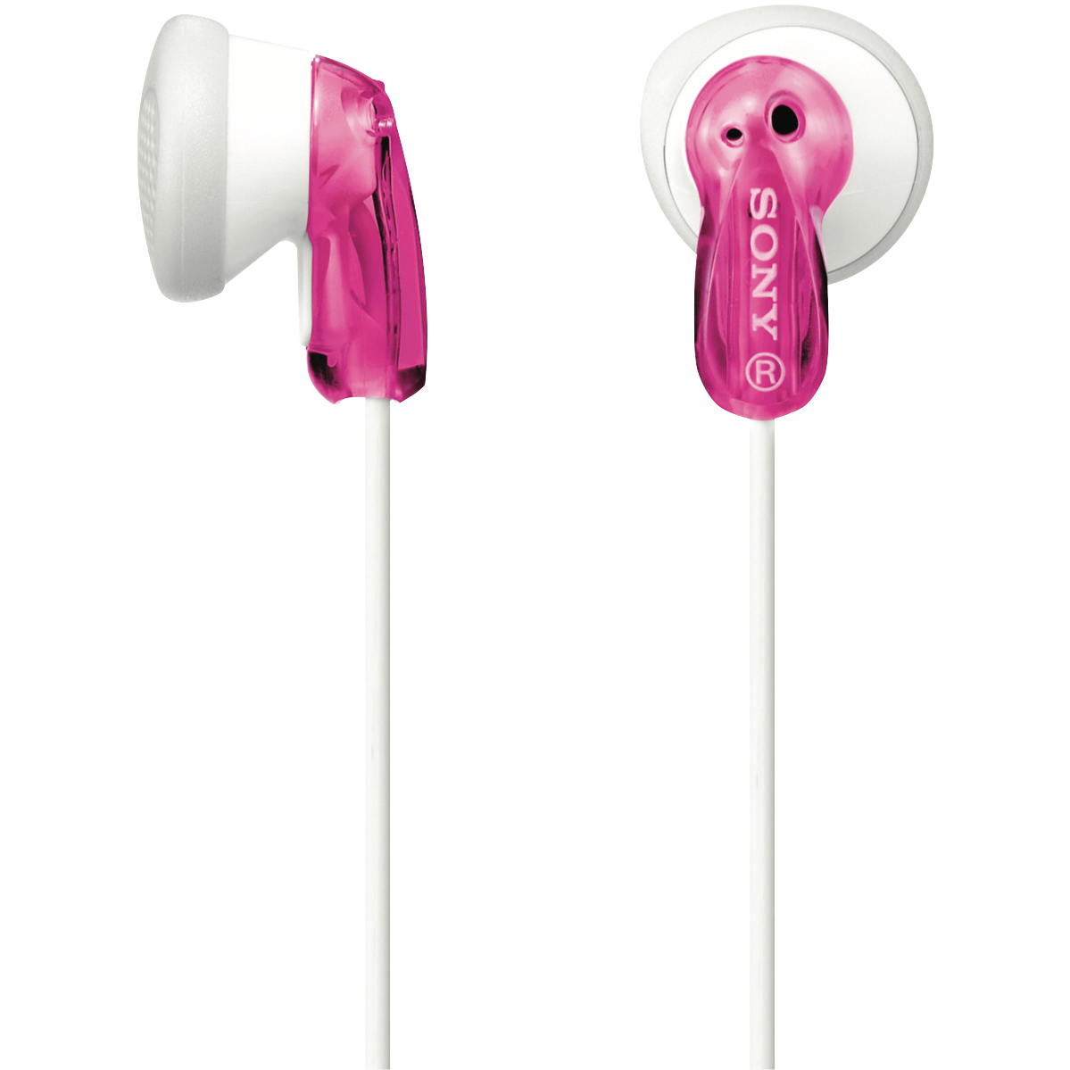 These pink Sony headphones are in-ear headphones. Their earbud design lets you listen for long periods of time and benefit from increased comfort. Pink Sony MDRE9LPPs have an 18 Hz - 22 kHz frequency response so you can enjoy throbbing bass notes and shimmering treble frequencies. They are a smart option for tuning in to the game while working out.