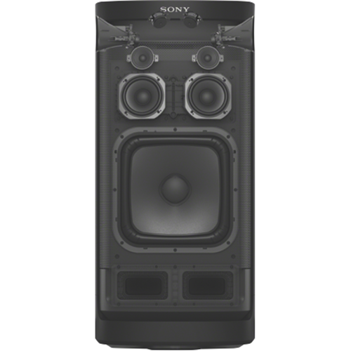 Never miss a second of your favourite party tracks with the Omnidirectional Party Sound produced by the Sony Powerful Wireless Party Speaker SRS-XV900B. The six tweeters provide Omnidirectional sound are located on each side of the speaker; they produce mid-range and vocal cut through via the dedicated stereo drivers. The incorporated X-Balanced Speaker Unit woofer and Jet Bass Booster port work together to offer punchy and impactful bass for everyone to enjoy. Also the X-Balanced Speaker Unit's almost rectangular diaphragm produces clear and deep bass sound compared to conventional speaker units. Powering the music all day and all night is the long lasting 25-hour battery of the Sony Party Speaker; if you need more power you can get 3 hours of playtime with just 10 minutes of charging. This Sony Speaker creates the mood both acoustically and visually; indirect illumination produces ambient light in all directions so the room or area can be enlightened in a way that matches your theme or event. Simple connect to the speaker by Bluetooth USB or optical cable to start playing your favourite tracks while being able to go portable using the sturdy convenient carry handle and sturdy castors. The TV Sound Booster improves your audio & visual TV experience by delivering deep bass and realistic high-frequency sound spread that delves you into every scene of your exciting movies sports or live performances. Sing along to your favorite songs using the including microphone port even switch it up to do perform on the guitar with the included 2nd input port.