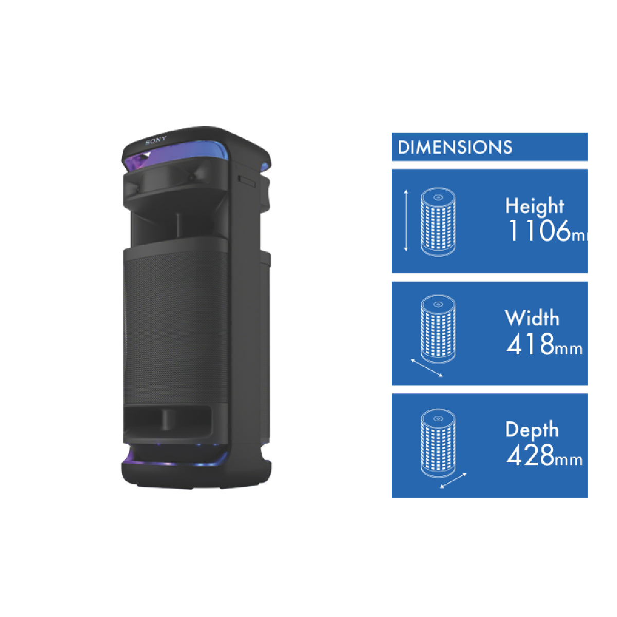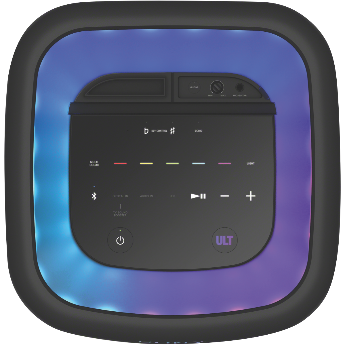 The Sony SRSULT1000 is a Wireless Bluetooth Party speaker. It features two types of adjustable bass via the ULT Button and 360 sound thanks to rear-facing tweeters.Bluetooth TV Sound Booster USB and line-in audio options ensure you will always have a way to play your music or use the included wireless microphone to liven up your next party.