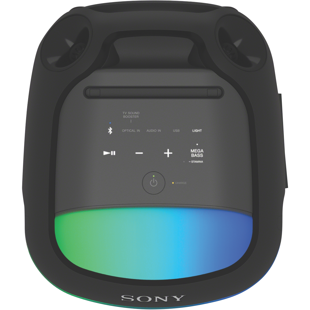 Turn up the party with the powerful Sony XV800 X-Series Portable Party Speaker. This Bluetooth speaker pumps out room-filling sound and dazzling lights to energize any get-together. Stream all your favorite playlists via Bluetooth 5.2 or the Sony Music Center app and let the MEGA BASS bring the thunder. With a frequency range of 20Hz to 20kHz this speaker delivers dynamic audio that's rich and clear. Connect up to 100 Party Speakers with Party Connect to blanket your whole venue in sound. The IPX4 splashproof design means the fun doesn't have to stop when the drinks start spilling. And a marathon 25 hour battery keeps the party going all night. The Sony XV800 portable party speaker is your ticket to epic gatherings. With its robust sound vibrant light show and extensive connectivity this speaker takes the energy up a notch. The manufacturer's part number for this product is SRSXV800B. Check out the Sony XV800 Party Speaker for your next big bash.
