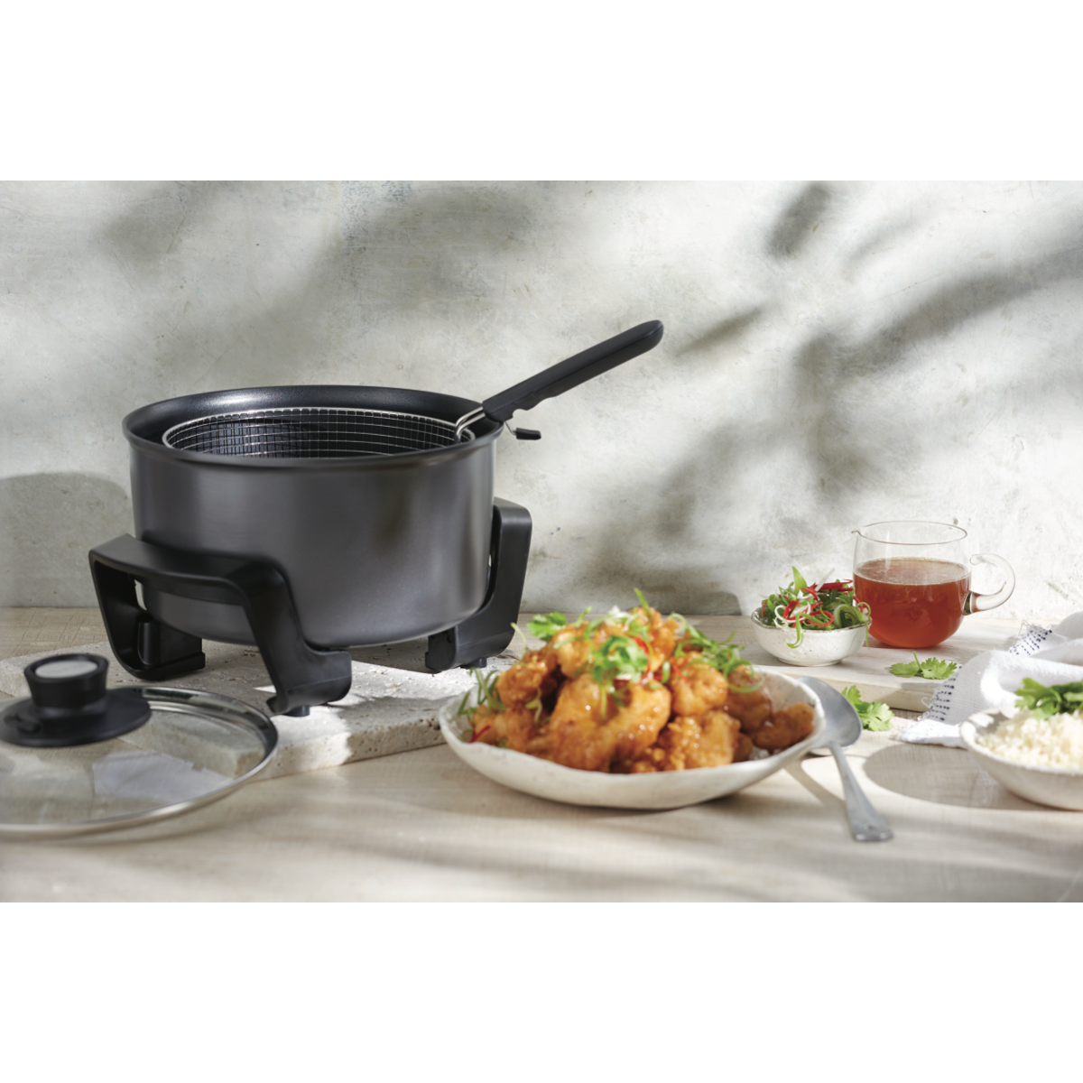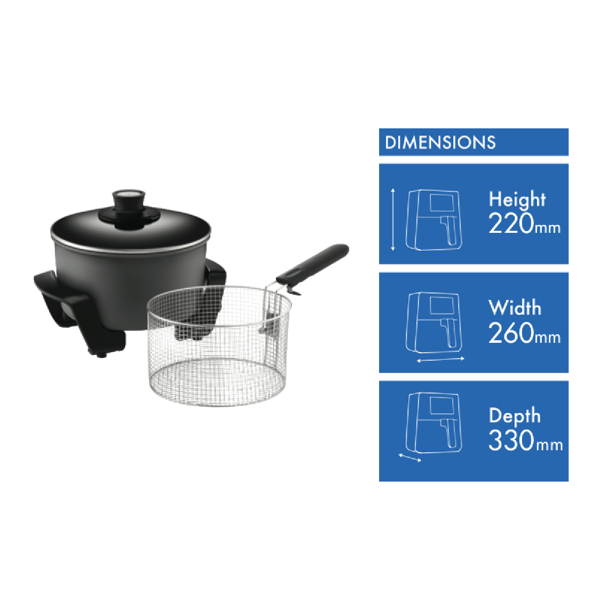 Additional Features Stainless steel basket, 5 Litre saucepan and deep fryer, Perfect to use as a saucepan, small frypan or deep fryer