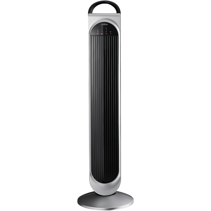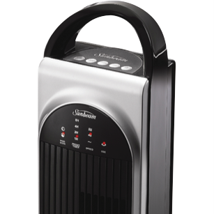 This Sunbeam portable fan is a tower fan. Its 3 speed settings let you choose high or low depending on your comfort level. The Sunbeam FA7450 comes with a remote and has a 70 degree oscillation. It features a timer allowing you to automatically shut off when no longer needed. The Sunbeam portable fan has a 1017mm height a 260mm depth and a 222mm width. It features a black and silver finish. This portable fan is good for remaining cool in any room.
