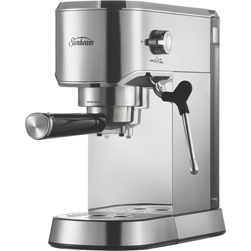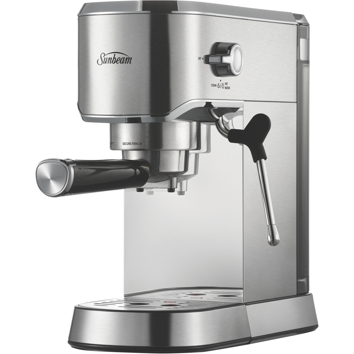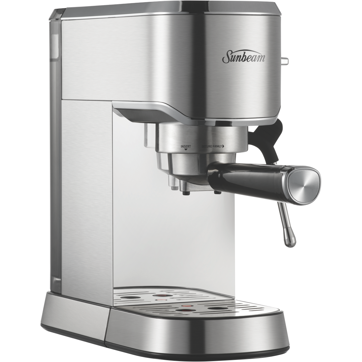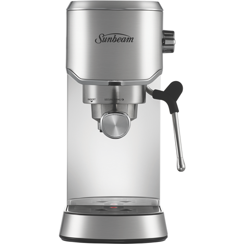 Savor barista-quality espresso at home with the Sunbeam Compact Barista Espresso Coffee Machine. This stainless steel manual coffee machine brews cafe-style coffee that will satisfy your inner barista. With a powerful 1250-1450 watt thermoblock heating system and 15 bar pump pressure it can extract rich full-flavored espresso from freshly ground beans. The 1 litre detachable water tank allows you to brew cup after cup without refilling. Froth milk with the built-in steam wand to create creamy cappuccinos and lattes. The cup warming tray keeps your mugs at the ideal temperature while you brew. This espresso machine includes single and double shot filter baskets tamper measuring spoon and milk jug - everything you need to pull consistently great shots. Programmable descaling alerts help maintain flavor and performance. Measuring just 305mm high 360mm deep and 138mm wide the Sunbeam Compact Barista Espresso Coffee Machine combines commercial-grade engineering with a compact footprint that fits perfectly on your kitchen benchtop. Craft barista-quality coffee drinks at home every day with this versatile manual espresso machine. The manufacturer's part number for this product is EMM2900SS. Discover the joy of being your own barista today.
