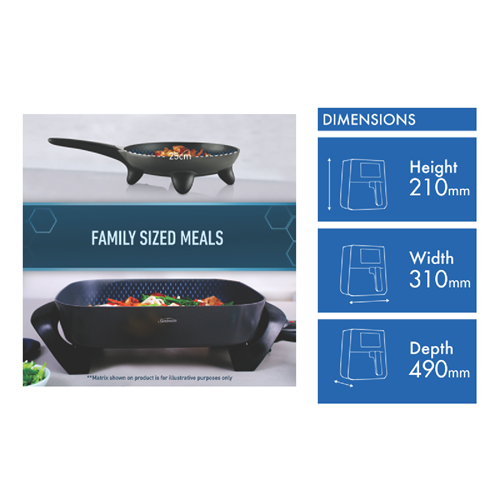 Cook up a storm for the whole family with the Sunbeam Diamond Force Brekky and Banquet Frypan & Skillet Set. This quality cookware set features a durable diamond-infused nonstick coating engineered to be twice as scratch resistant as traditional nonstick surfaces. The unique interlocking diamond matrix design reinforces the two-layer coating for unbeatable durability and easy food release. Whether you're frying eggs for a big weekend breakfast or searing steaks for a backyard barbecue this set has you covered. The included 31 cm frypan and 21 cm skillet offer versatile everyday cooking with cast-in heating elements to distribute heat evenly. Clean up is a breeze thanks to the scratch-resistant nonstick coating. With thoughtful details like a handy temperature probe for monitoring oil temperature this set takes the guesswork out of cooking. Durable and designed for daily use the Diamond Force cookware set will be your new go-to for all kinds of meals. It's backed by a 12 month warranty for added peace of mind. The manufacturer's part number for this product is PUM4000DF. Take your cooking to the next level with this high-quality cookware set from Sunbeam.