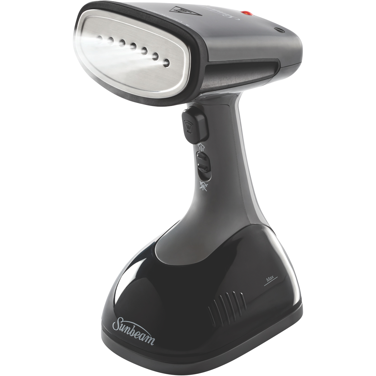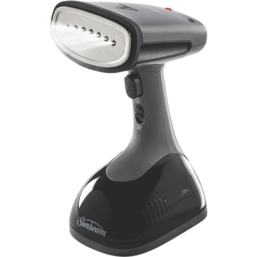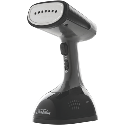 Power up your wardrobe with the Sunbeam Power Shot Handheld Garment Steamer delivering a powerful shot of steam to refresh clothes in seconds. This 1200W handheld steamer features Sunbeam's exclusive Power Shot technology providing 45% more steam to remove wrinkles fast. With a large 240ml removable water tank it heats up in just 60 seconds so you can start steaming right away. Tackle shirt collars dresses curtains upholstery and more with the two included accessories - a fibre brush and cloth brush. Backed by a 2 year manufacturer's warranty the Power Shot Handheld Garment Steamer makes quick work of wrinkles and creases for a crisp smooth finish. Look polished in no time with this compact lightweight steamer. The manufacturer's part number for this product is SGS0900. Discover the power of steam today.