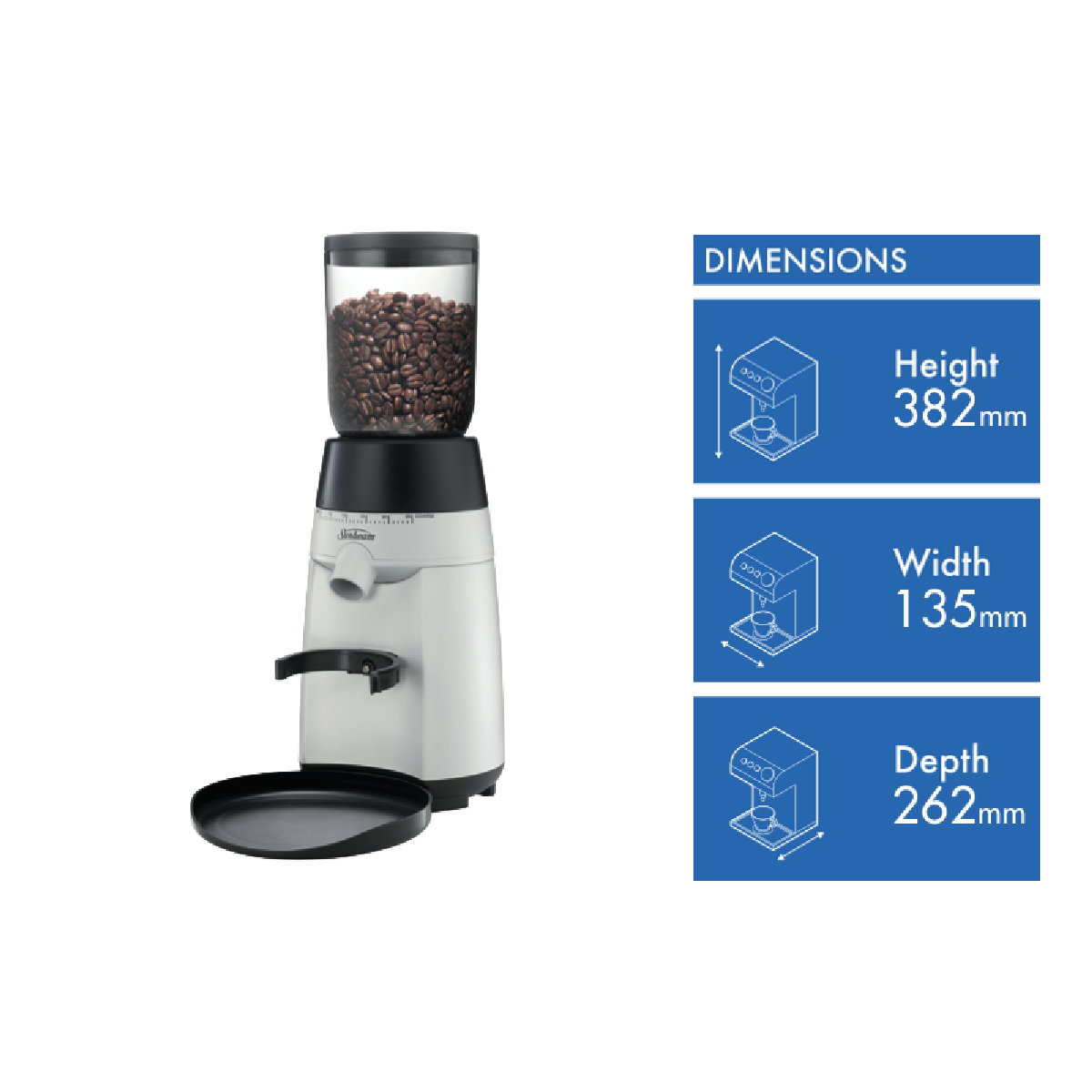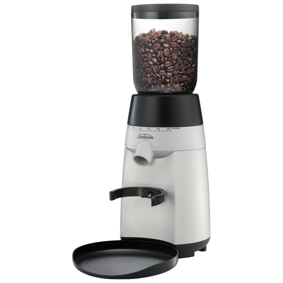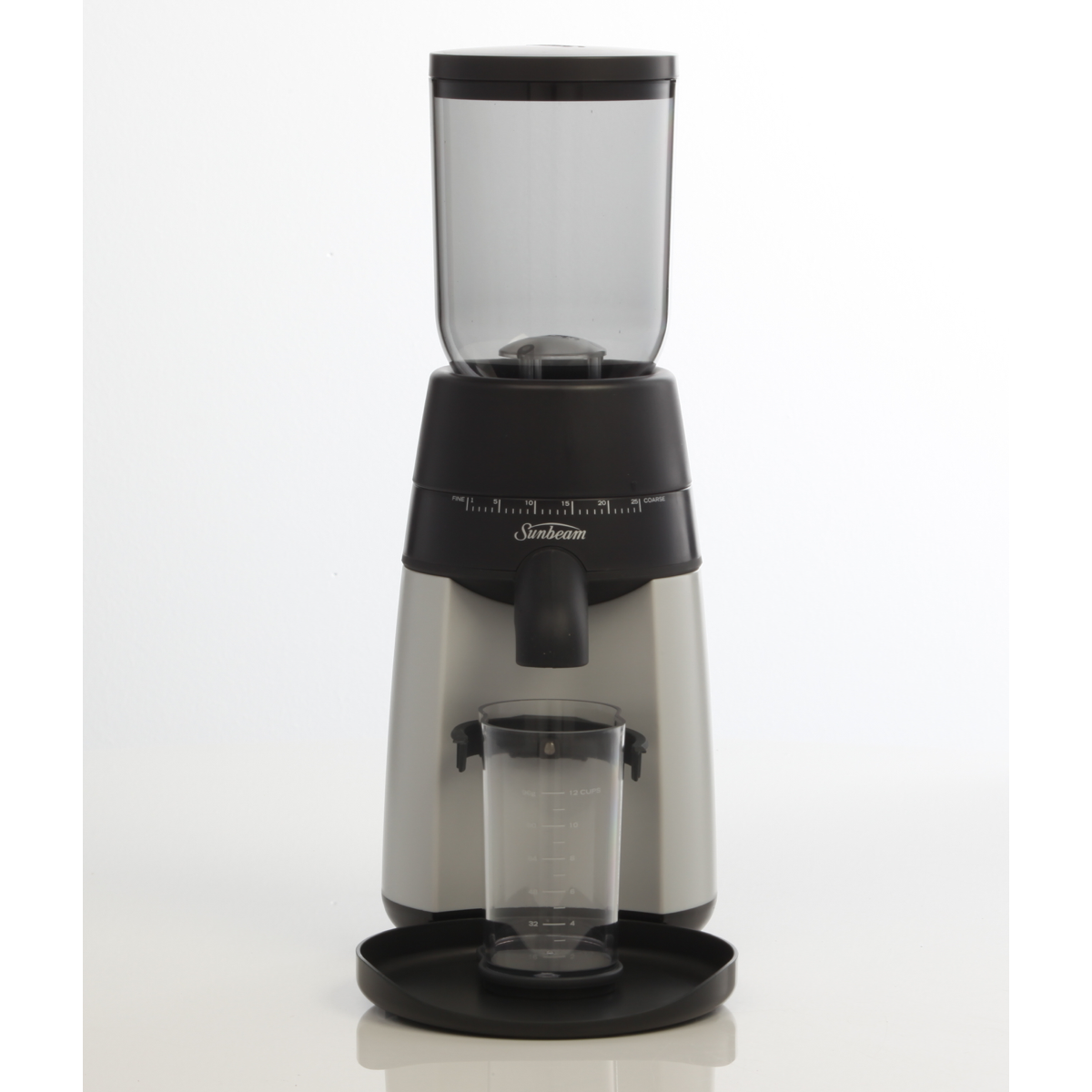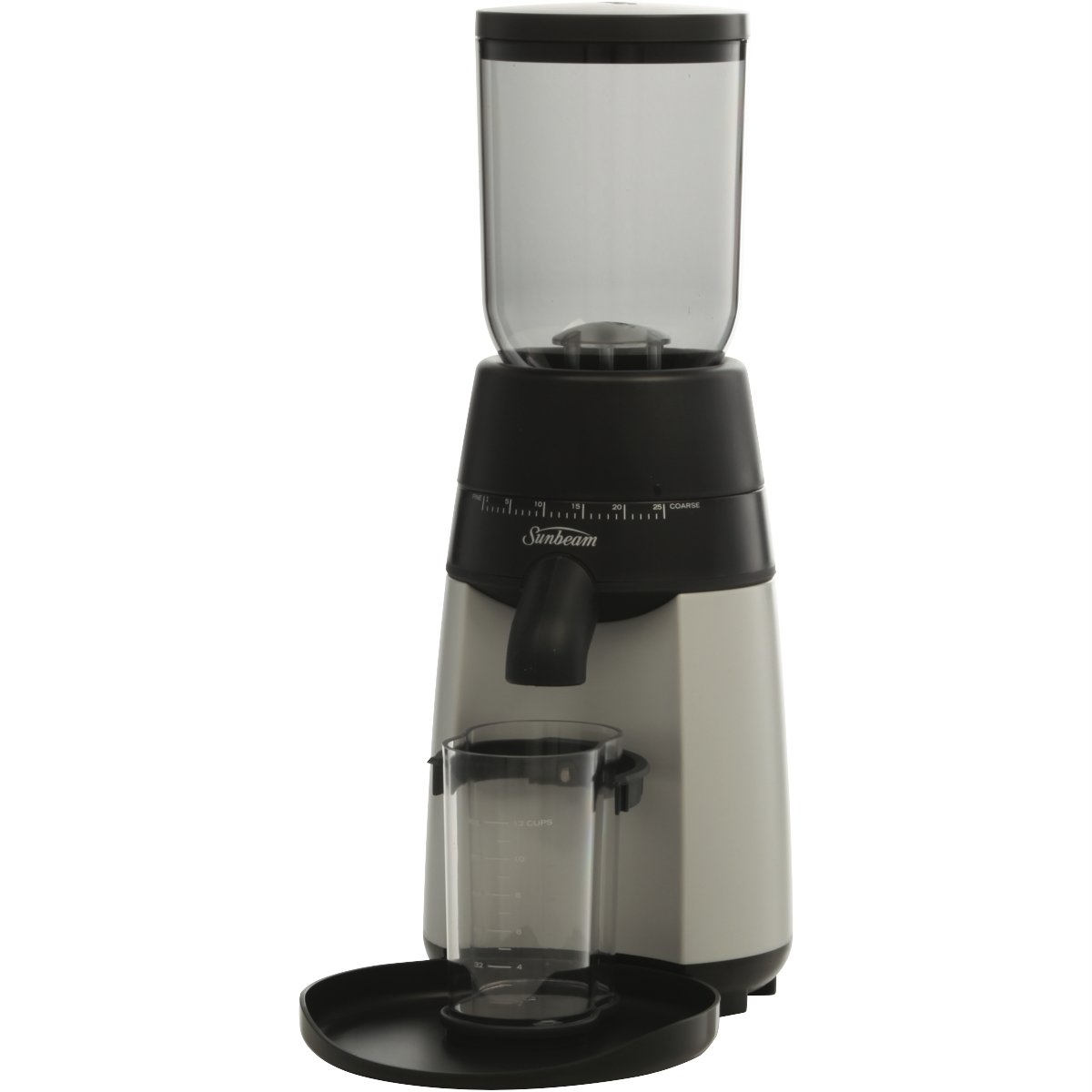 Grind fresh coffee every morning with the Sunbeam Grindfresh Multigrinder. This versatile coffee grinder features stainless steel blades that effortlessly grind beans for espresso plunger or filtered coffee. With a powerful 200W motor it grinds up to 100g of beans in seconds. The large grinding chamber takes care of multiple cups in one go. Adjust the grind size from fine to coarse with a simple turn of the dial. The see-through lid lets you monitor grinding progress. Compact in size the grinder looks smart on any kitchen countertop. Cleaning is easy too - just wipe the chamber clean after use. With a 1 year warranty you can purchase with confidence. The manufacturer's part number for this product is EM0440. Check out the Sunbeam Grindfresh Multigrinder today for fresh coffee made just the way you like it.