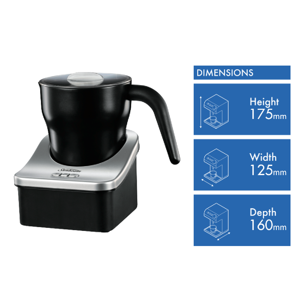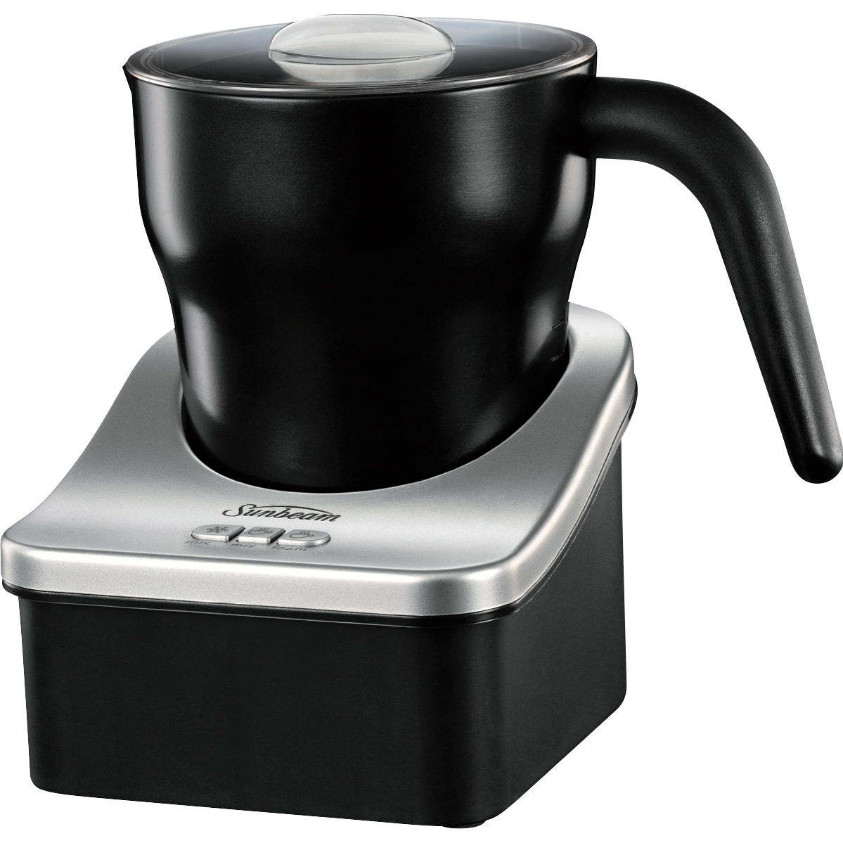 Take your morning coffee to the next level with the Sunbeam Milk Frother. This easy-to-use milk frother lets you create barista-quality coffee drinks right at home. With just a push of a button you can transform milk into a light creamy foam topping for cappuccinos lattes and more. The stainless steel jug heats and froths milk quickly and evenly for perfectly frothed milk every time. Whether you like your coffee black or prefer a frothy cappuccino this milk frother has you covered. The compact size and sleek design make it easy to store and looks great on any countertop. Make café-style coffee drinks a part of your daily routine with the simple yet powerful Sunbeam Milk Frother. The manufacturer's part number for this product is EM0180. Check out this milk frother to elevate your at-home coffee experience today.