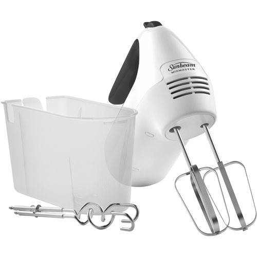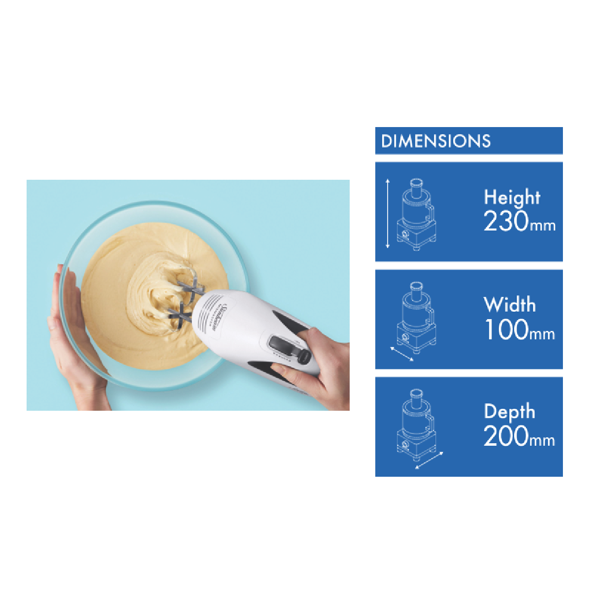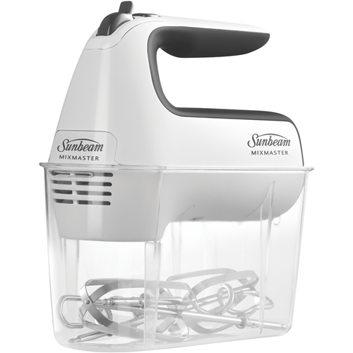 The Sunbeam Mixmaster Hand Mixer is a powerful yet easy-to-use kitchen helper designed to tackle all your mixing needs with ease. With 6 variable speeds and a burst of power feature this hand mixer can power through even the toughest mixing tasks from light batters to heavy doughs. The sleek white and grey design will look great on any countertop while the stainless steel attachments are dishwasher safe for no-fuss cleaning. Whether you're whipping up quick weeknight dinners or weekend baking projects the Sunbeam hand mixer is up for the job. The 12 month warranty provides peace of mind. For powerful performance and versatility in a compact hand mixer look no further than the Sunbeam Mixmaster. The manufacturer's part number for this product is JMP1000WH. Take your kitchen skills to the next level with this must-have baking essential.