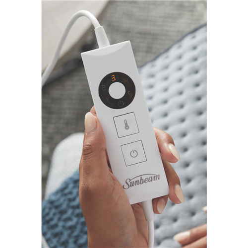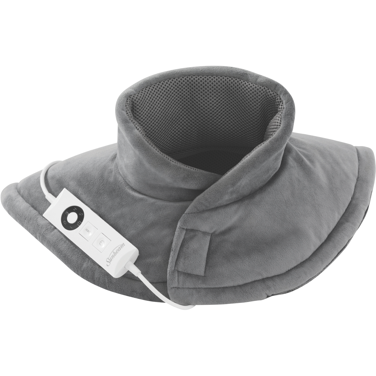 Soothe neck and shoulder tension fast with the Sunbeam Neck and Shoulder Heating Pad. This grey heating pad features built-in Intellisense Technology that allows it to heat up in just 90 seconds along with 5 customizable heat settings to find your ideal level of soothing warmth. The soft polyester fabric sleeves gently wrap around your neck and shoulders to relax muscles and relieve pain. With auto shut-off after 3 hours of continuous use you can relax knowing this heating pad will turn off on its own. The easy-to-use controller makes it simple to find the perfect temperature. And when you're done just detach the machine washable pad sleeves and throw them in the laundry. Sunbeam designed this heating pad to be ready in minutes comfortable to wear and easy to maintain. So treat yourself to some relaxation and pain relief with the Sunbeam Neck and Shoulder Heating Pad. The manufacturer's part number for this product is HPN5300.