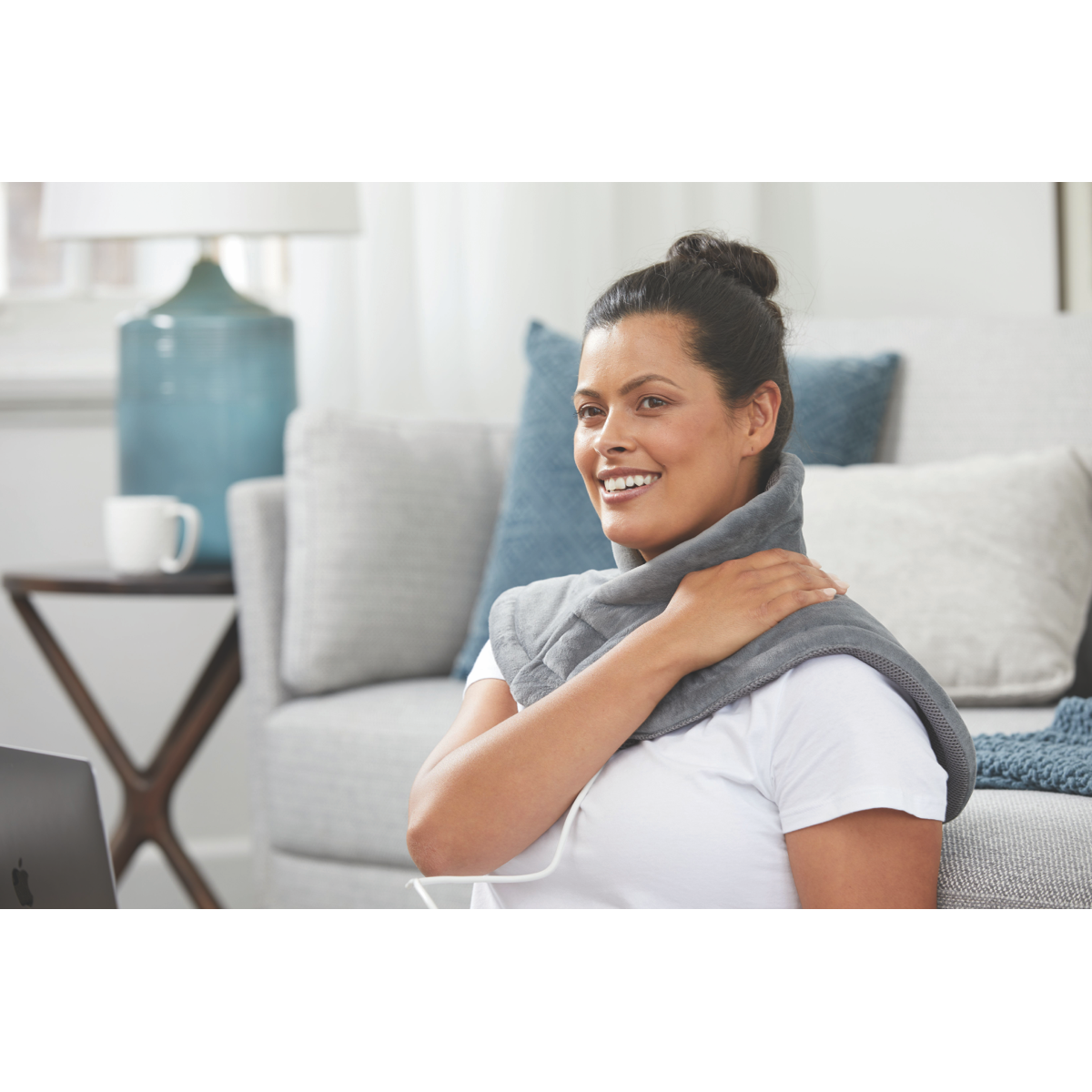 Additional Features Fast Heat up: Ready to use in just minutes. Comfortable design: Simply attach the pad sleeves around your neck and shoulder. Machine-washable design makes it a breeze to clean up. Included controller provides easy settings configuration