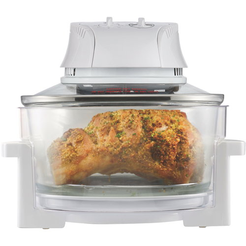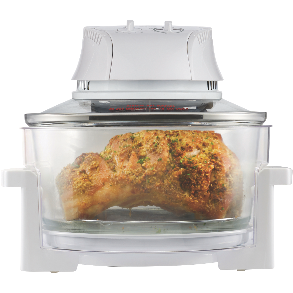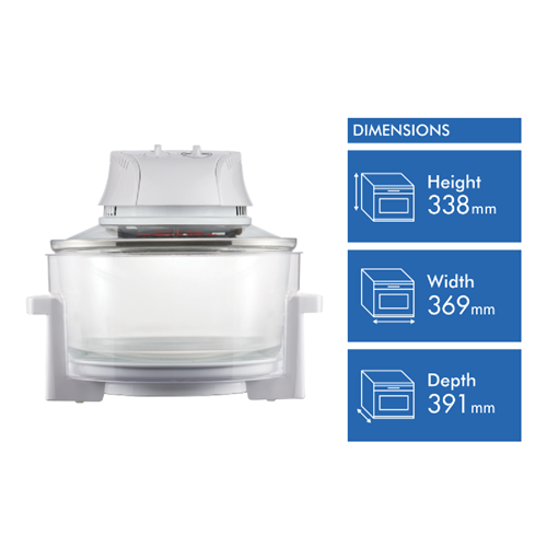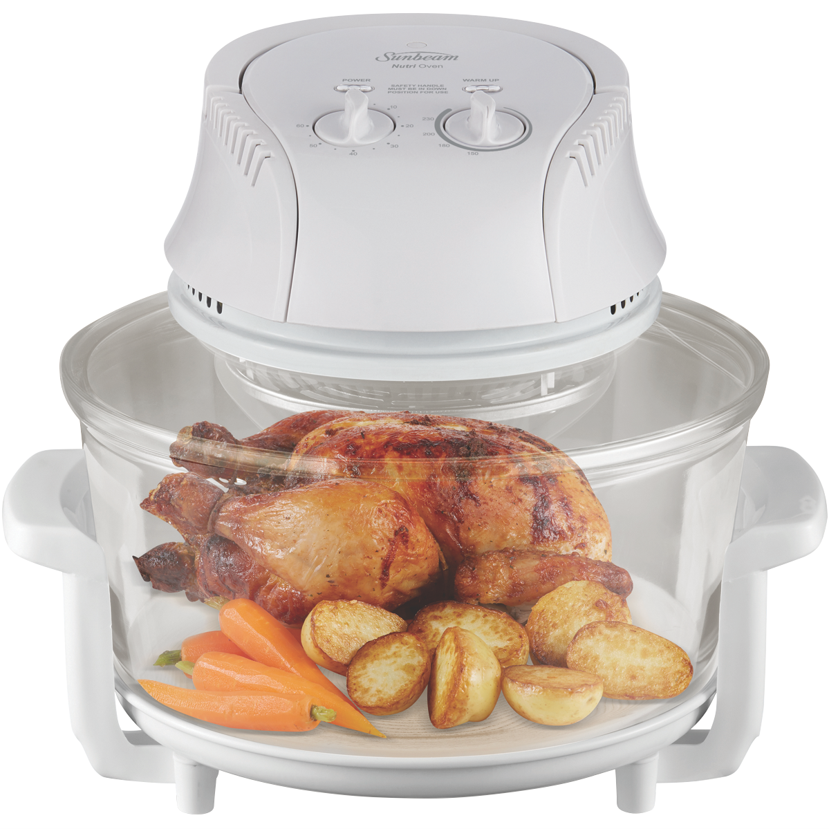 Enjoy home cooking on a new level with the Sunbeam Nutrioven Convection Oven. This convection oven provides 12L of space with 1300 watts of power and six cooking functions for air frying grilling baking steaming roasting and toasting. The fan-assisted technology and temperature control up to 230 degrees Celsius allow you to cook a variety of dishes with even heat distribution. The Nutrioven features plastic and glass construction adjustable 60-minute timer 1.2m power cord and dishwasher safe accessories like the high and low racks tongs non-stick baking dish and lid holder. Measuring 369mm wide by 338mm high and 391mm deep this 6.5kg oven simplifies meal prep with its easy-to-use control knobs. Whip up quick weeknight dinners sides appetizers and more with this versatile countertop oven. The Nutrioven comes with a 1 year manufacturer's warranty for added peace of mind. The manufacturer's part number for this product is COP3000WH. Give your kitchen a boost with the Sunbeam Nutrioven Convection Oven.