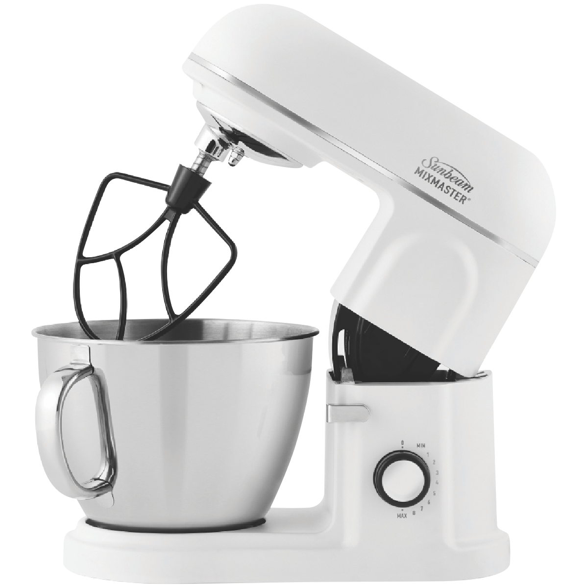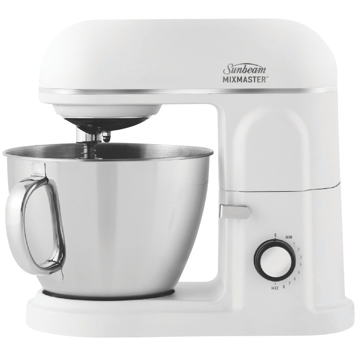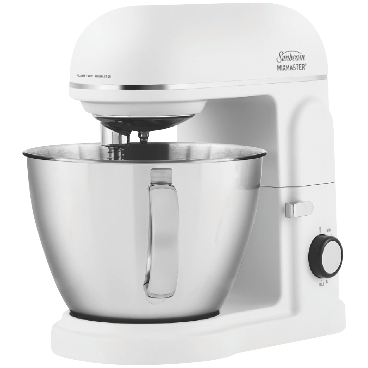 Take your baking to the next level with the Sunbeam Planetary Mixmaster The Master One stand mixer. This powerful 850W mixer features a 5L bowl capacity and 8 speeds making it ideal for mixing kneading and whipping all your favorite recipes. The tilt-back head provides easy access for adding ingredients while the planetary mixing action ensures thorough 360° coverage. With dishwasher-safe beaters and hooks clean up is a breeze. Durable enough for pizza and bread doughs the Master One mixer will be your kitchen's MVP. Accessories include a scraper beater diecast beater and dough hook stainless steel whisk and spatula for convenience. In white this mixer adds a touch of classic style to your countertop. Visualize the possibilities with the Master One. The manufacturer's part number for this product is MXM5000WH. Discover how this quality stand mixer can inspire your culinary creativity today.