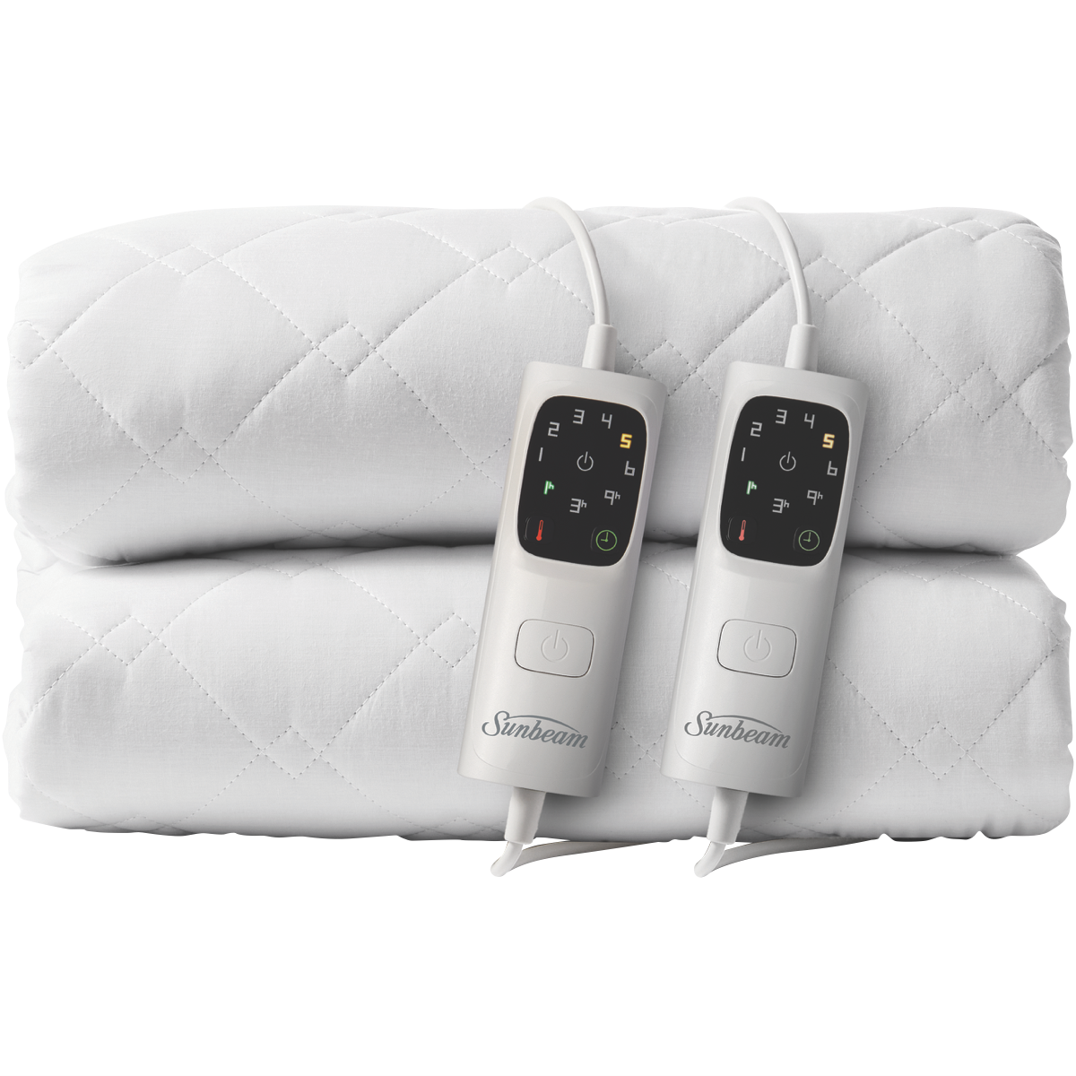Bask in luxurious comfort each night with the Sunbeam Sleep Perfect Quilted Antibacterial King Electric Blanket. This king-sized blanket provides cozy warmth for your bed thanks to its six heat settings and dual heat controls allowing you and your partner to customize your own side. The soft quilted cotton and polyester fabric with antibacterial treatment ensures your blanket stays fresh and hygienic. With auto-off for safety and peace of mind this machine-washable blanket makes it easy to stay warm all night long. The blanket measures 1780mm wide by 2000mm long and weighs 3.4kg providing full coverage for your king bed. Upgrade your sleep experience with this soft warm electric blanket from Sunbeam. The manufacturer's part number for this product is BLQ6471. Treat yourself to a great night's sleep tonight.