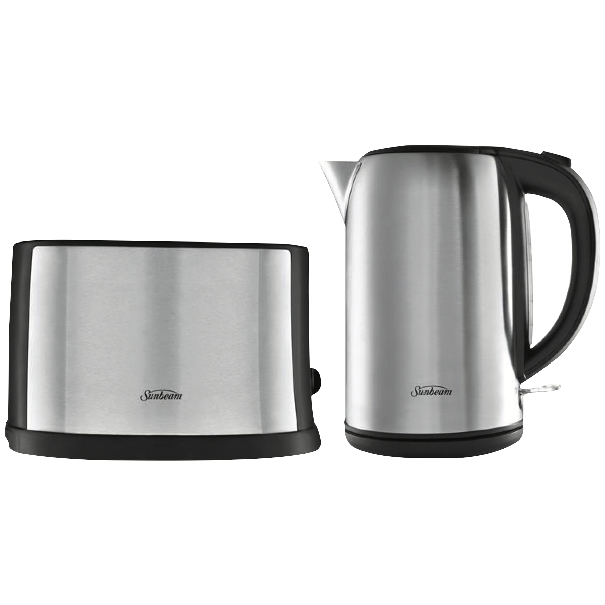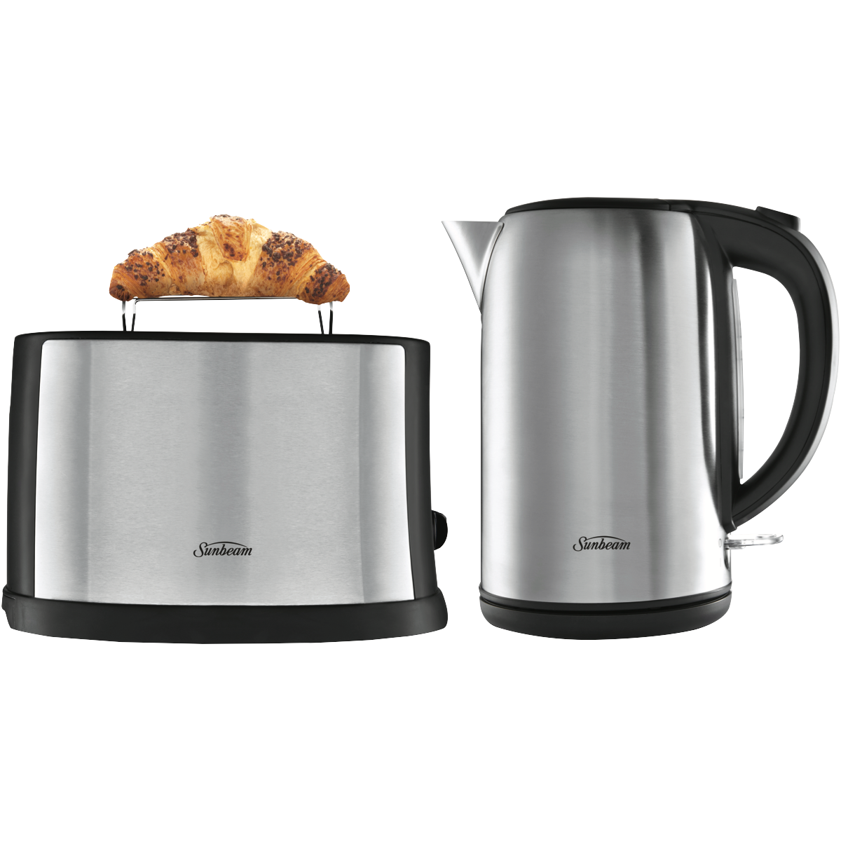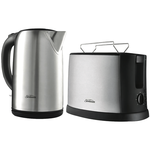 You have everything you need to create a quick easy breakfast with this Sunbeam PU5201 Toaster & Kettle Breakfast Pack. Pop in 2 slices of toast and adjust the browning settings from 1 to 7 for the perfect level of golden brown bread - before slathering on lashings of butter or vegemite. There's no problem if you've only got frozen bread - just hit the defrost button and let the toaster do the rest Plus there's also a reheat button if you get distracted and forget to butter your toast in time. While your breakfast is toasting pop the kettle on. The included kettle in this Sunbeam Breakfast Essentials Pack PU5201 has a 1.7-litre capacity so you can boil up to 7 cups of water at once and with a fast boil concealed heating element you'll be enjoying a cup of tea or coffee in no time. Both kettle and toaster in the PU5201 Breakfast Essentials Pack have a stainless steel finish so not only do they match but they're a great addition to any kitchen Prepare a simple breakfast in just minutes with help from the Sunbeam Breakfast Essentials Pack.
