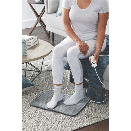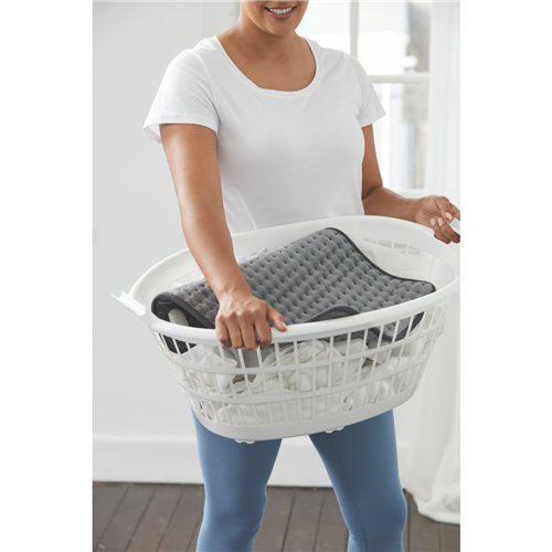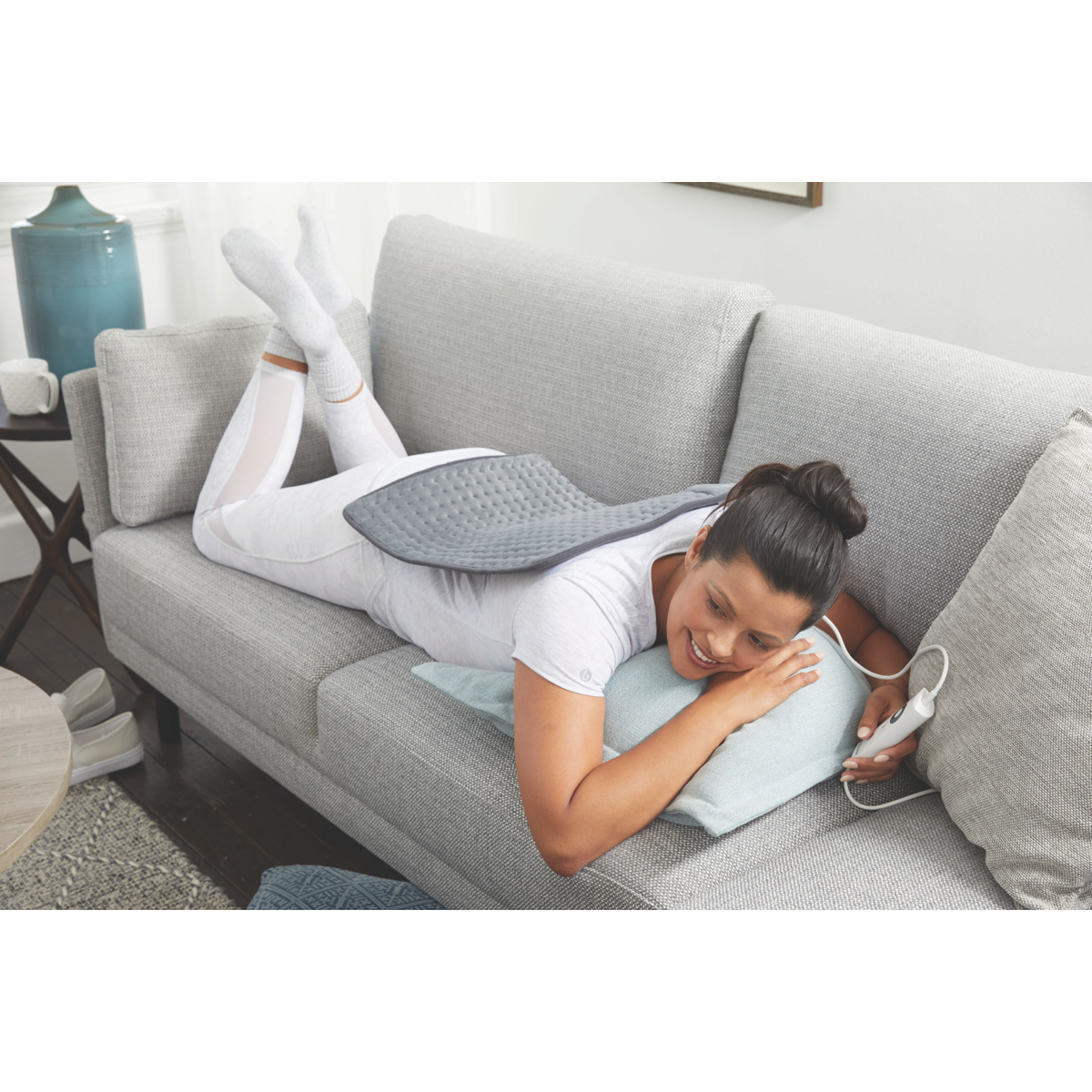 A comfortable heating pad to soothe away aches and pains with advanced heat therapy. The Sunbeam XL Multi Purpose Heating Pad provides gentle heat relief exactly when and where you need it. With built-in Intellisense Technology this soft polyester heating pad warms up in just 90 seconds and features 5 customizable heat settings to target tension. The extra-large 380mm x 500mm pad size covers more area for full back or leg relief. Auto shut-off after 3 hours gives peace of mind. With a 2.3m power cord length and weighing just 0.5kg this grey heating pad is easy to use anywhere. Experience the healing power of heat with advanced features like getting heat-up in just 90 seconds. The Sunbeam XL Multi Purpose Heating Pad's 5 heat settings provide customizable relief for muscle tension. Consider this heating pad for safe effective pain management. The manufacturer's part number for this product is HPM5100. Give this product a try today.