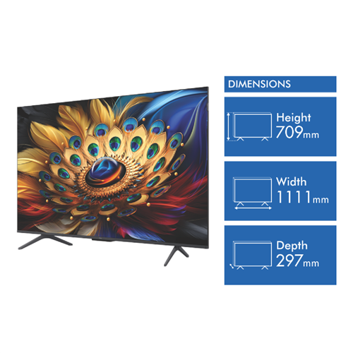 Immerse yourself in a stunning visual experience with the TCL 50 C655 QLED Google TV. This 50-inch QLED TV boasts a 38402160 Ultra HD resolution delivering crystal-clear images with vibrant colors enhanced by Quantum Dot Technology. The AiPQ Pro Processor ensures smooth performance while the Google TV platform provides access to popular streaming apps like Netflix Stan Disney+ and more. Enjoy hands-free control with the built-in Google Assistant or use the remote to access Alexa. With HDR10 plus support and Dolby Atmos sound you'll enjoy cinematic quality in the comfort of your home. The C655 is also gaming-ready with a 60Hz refresh rate and 100 Motion Rate. Multiple eye care features protect your vision during extended viewing sessions. Connectivity options include 3 HDMI and 1 USB port. The 4.5-star energy rating ensures efficient power consumption. The manufacturer's part number for this product is 50C655. 50C655 is the manufacturer's part number of this product. Elevate your home entertainment setup with the TCL 50 C655 QLED Google TV and experience a new level of immersion.