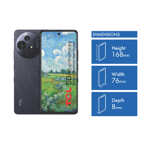 The TCL 50 Pro NXTPAPER 5G is a sleek and stylish smartphone that's ready to take on your day. With its 6.78 IPS LCD NXTPAPER display and FHD+ 1080x2460 resolution you can enjoy crisp visuals for all your favorite content. Capture life's moments with the impressive 108MP+8MP+2MP rear camera setup and 32MP front camera. The generous 512GB storage (expandable) and 8GB RAM ensure smooth multitasking while 5G connectivity keeps you connected at incredible speeds. Powered by a 5010mAh battery and the efficient MediaTek Dimensity 6300 processor this phone is built to keep up with your busy lifestyle. 90061210.