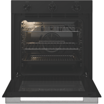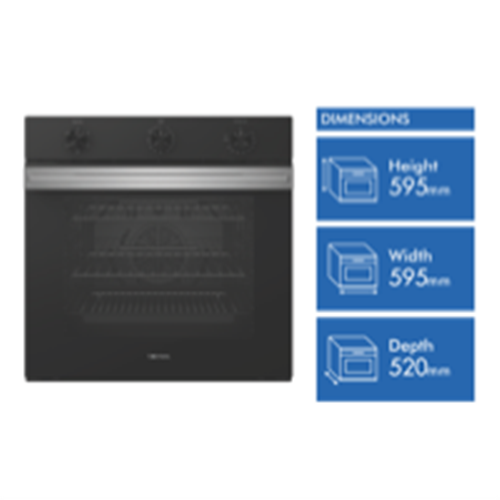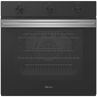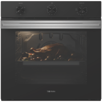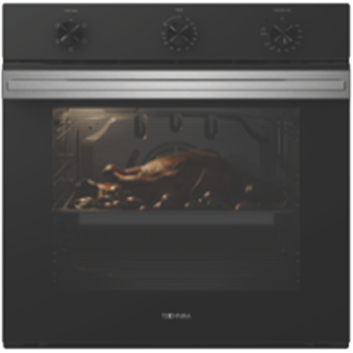 In an on-trend black design with black controls and stainless-steel trim this Technika 60cm Electric Oven TGO65X gives your kitchen a timeless look with its minimalist aesthetic available exclusively at The Good Guys. Serve up family dinners thanks to the 72-litre usable capacity oven cavity with four cooking functions including Fan Forced Grill Fan Grill and Defrost to have all your roasting baking and grilling needs covered. Starting the oven is nice and easy with just two control knobs to operate: select a cooking function at the left oven function selector followed by the temperature at the far-right oven thermostat control. Operate the middle timer to manually control the cooking duration. This Professional Series Technika oven has a triple-glazed door to keep the heat in so your food cooks quickly and efficiently and an oven cavity cooling system that pulls heat away from the outside to keep the door controls and handle cool to touch. Plus the door is prevented from slamming shut by a sophisticated hinge system that ensures a soft close with a gentle push. Included is a factory-fitted 10amp plug so if you have a standard 10amp power point then this oven can be plugged in and used immediately*. *Before installing we strongly recommend all wiring is checked and certified by a licensed electrician.