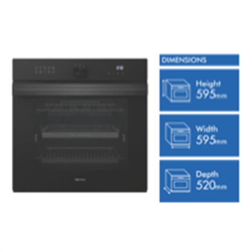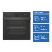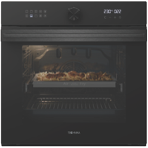 In a sleek black glass design with dark stainless accents this Technika 60cm Pyrolytic Oven TGP0611ABK brings a timeless quality to any new kitchen while offering plenty of cooking options such as Air Fry for a tasty midweek addition. Available exclusively at The Good Guys this 72-litre usable capacity oven has countless cooking functions for baking grilling and roasting plus the ability to fry by the combination of high heat and rapidly circulating air with little to no oil required thanks to this oven's Air Fry functionality and included Air fryer basket for crispy chicken and chips. Turn splashes into ashes with the Pyrolytic function that locks the door for safety as temperatures inside reach very high so all you need to do is give it a wipe once the oven has cooled down. Access all functions via the centre control knob with the function display shown to the left while the timer can be accessed at the far-right touch controls. This Professional Series Technika oven has a triple-glazed door to keep the heat in so your food cooks quickly and efficiently while the Soft Close door ensures a quiet close every time with just a gentle push. Beautiful to look at and to cook with this Technika oven merges form and everyday functionality into one stylish appliance.