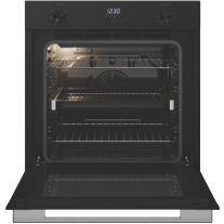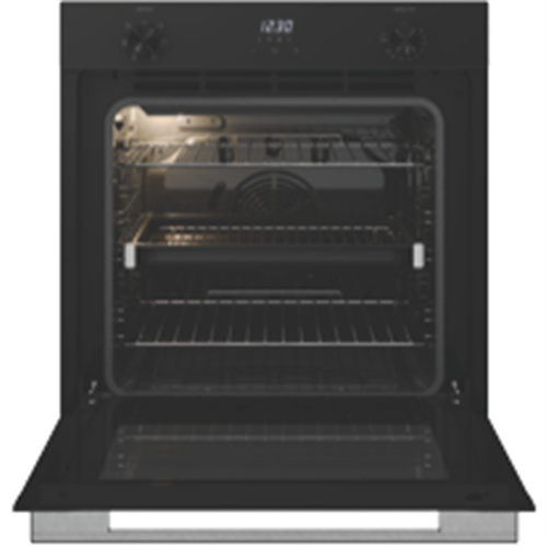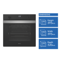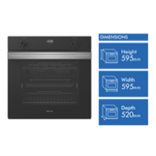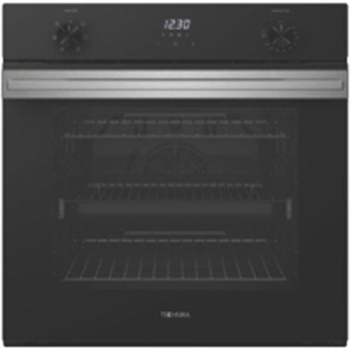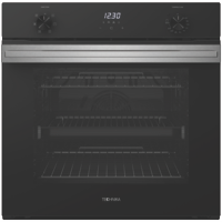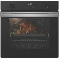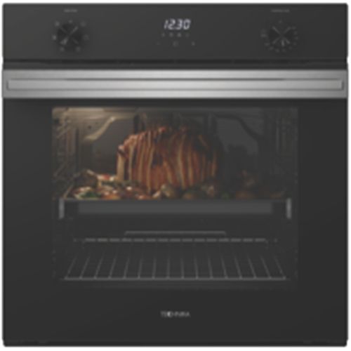 In on-trend black glass with black control dials stainless-steel trim and an LED display this Technika 60cm Electric Oven TGO65X gives your kitchen upgrade a modern yet timeless aesthetic to be enjoyed for years to come. Available exclusively at The Good Guys serve up large dinners thanks to its 72-litre usable capacity cavity with five cooking functions to have all your roasting baking and grilling needs covered; including 'Intensive Bake' for extra-crispy battered chicken or chips by the uniform heat that circulates from above and around. Starting the oven is nice and easy with just two control knobs to operate: select a cooking function at the left oven function selector followed by the temperature at the far-right oven thermostat control. A fully programmable timer can be conveniently operated at the centre touch controls. This Professional Series Technika oven has a triple-glazed door and a braided oven seal to keep the heat in so your food cooks quickly and efficiently while the braided design offers ultimate durability. Plus the door is prevented from slamming shut by a sophisticated hinge system that ensures a soft close with just a gentle push. Create quality food with the effortless fuction of this Technika black oven.