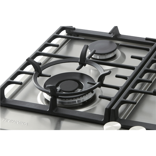 This stainless steel Technika gas cooktop has a high-efficiency wok burner plus three additional burners so you can stir-fry and cook side dishes all at once. It features electronic ignition so you can get to the level of gas you need very quickly by operating the control knobs located at the front for easy access. The Technika TGC6GX features cast iron trivets to effortlessly hold the heaviest of cookware. This 60cm gas cooktop features easy-clean stainless steel for a simple wiping away of any spills with a damp cloth once the cooktop has cooled down.