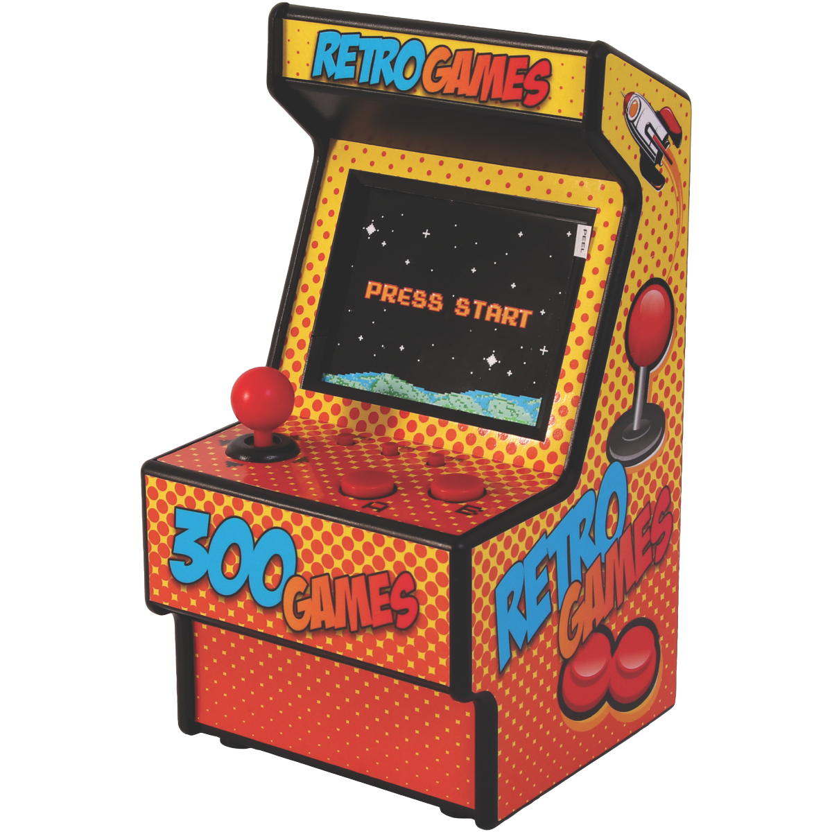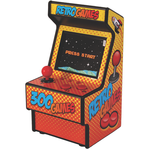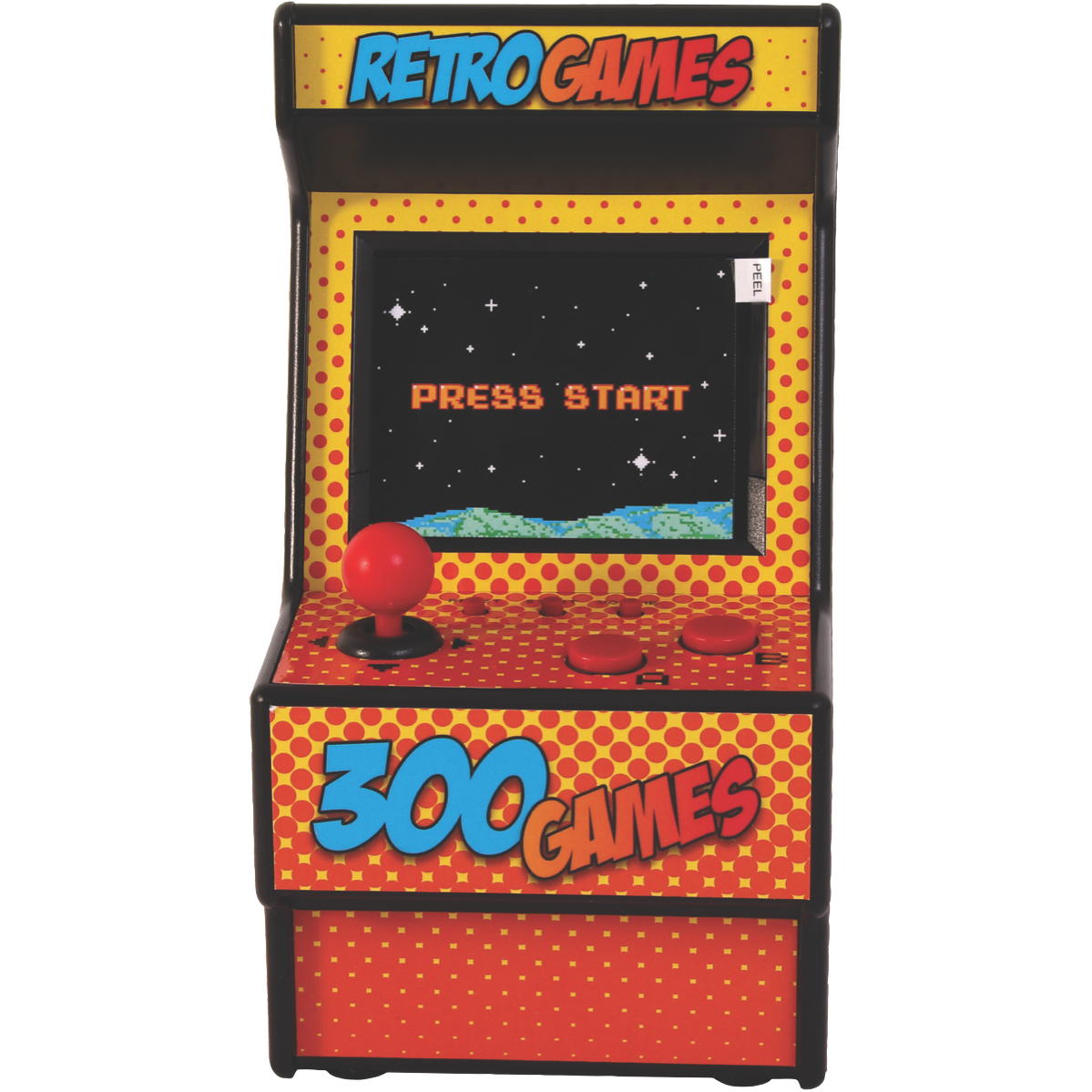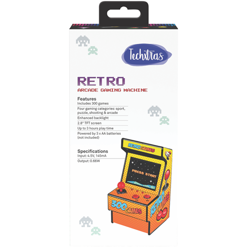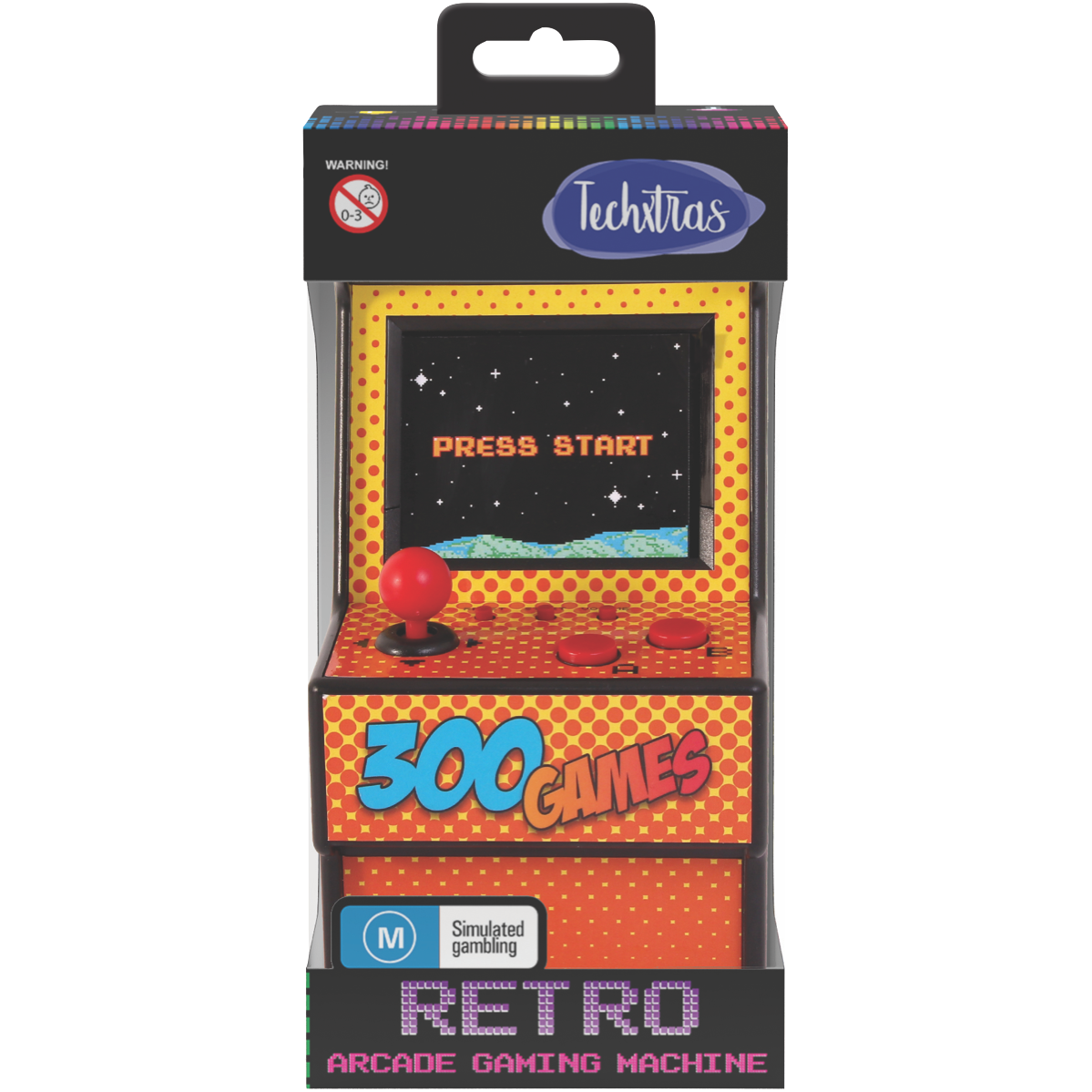 Have fun on the go with the Techxtras 300-in-1 Retro Games Machine in retro yellow! This portable console features 300 exciting built-in games to keep you entertained anywhere. With classic 8-bit and 16-bit games spanning multiple consoles like Nintendo and Sega you'll relive your childhood and discover new retro adventures. The large 2.8 color screen makes gameplay easy to see while the ergonomic design ensures comfortable handheld use. Enjoy hours of gameplay with the long-lasting built-in rechargeable battery. Connect to your TV or projector with the AV out cable to play on the big screen. The lightweight compact size makes this console ideal for travel so you can game on planes trains and more! Rediscover retro gaming magic with 300 unforgettable classics in your pocket. The manufacturer's part number for this product is GAY11115.