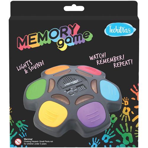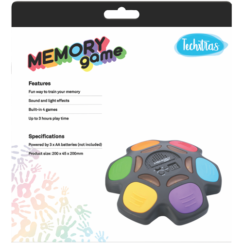 A portable game for on-the-go entertainment the Techxtras 4-in-1 Memory Game provides hours of fun and mental stimulation. This lightweight black game is perfect for passing the time on long trips or rainy days. With 4 exciting variations this memory game helps sharpen concentration and improve memory. Play classic matching challenging upside-down matching entertaining animal matching or exciting racing matching for solo or competitive multiplayer fun. The game's compact 200mm x 45mm x 200mm size means you can bring it anywhere. Visual and memory skills get a workout with this handy game. Enjoy a modern twist on the classic memory game genre with 4 modes to choose from. The manufacturer's part number for this product is GAK11111. Challenge your mind and reflexes with the Techxtras 4-in-1 Memory Game.