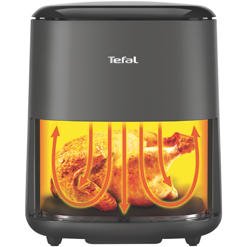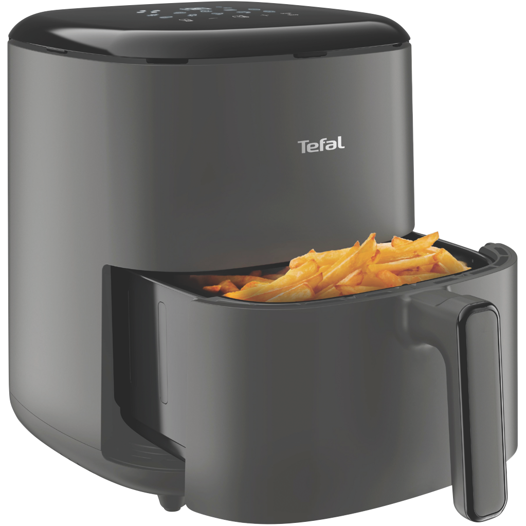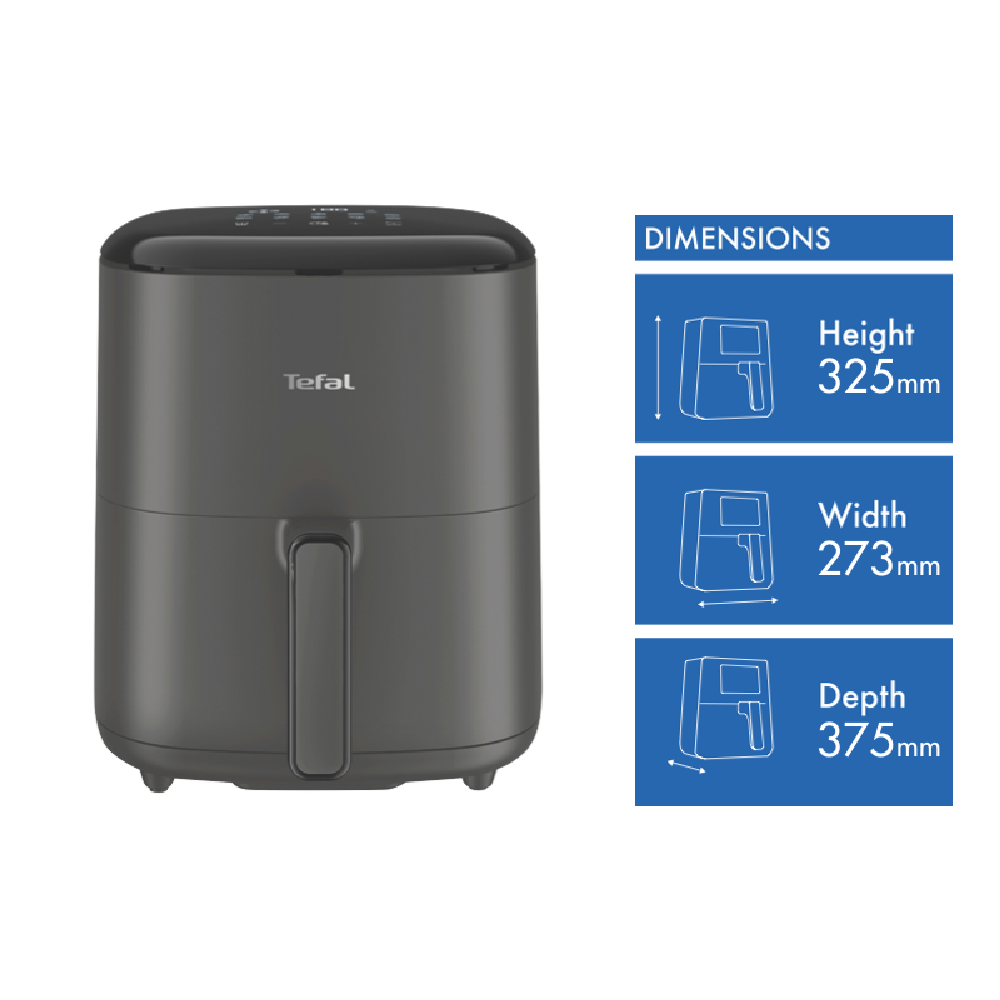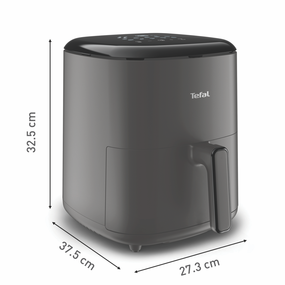 Make restaurant-quality meals with less oil using the Tefal 5 Litre Easy Fry Max Air Fryer. This coal grey kitchen helper has 10 preset menus for everything from French fries to desserts so you can cook all your favourites with just a tap on the LED touchscreen. The 5 litre capacity fits enough food for the whole family while Extra Crisp technology ensures everything comes out perfectly golden. Set the temperature anywhere from 80 C to 200 C and the 60-minute timer with auto shut-off means you can walk away without worrying. The cool touch handle keeps your hands safe and cleanup is a breeze with the non-stick dishwasher-safe basket and plate. Model number: EY245H.