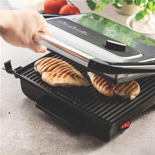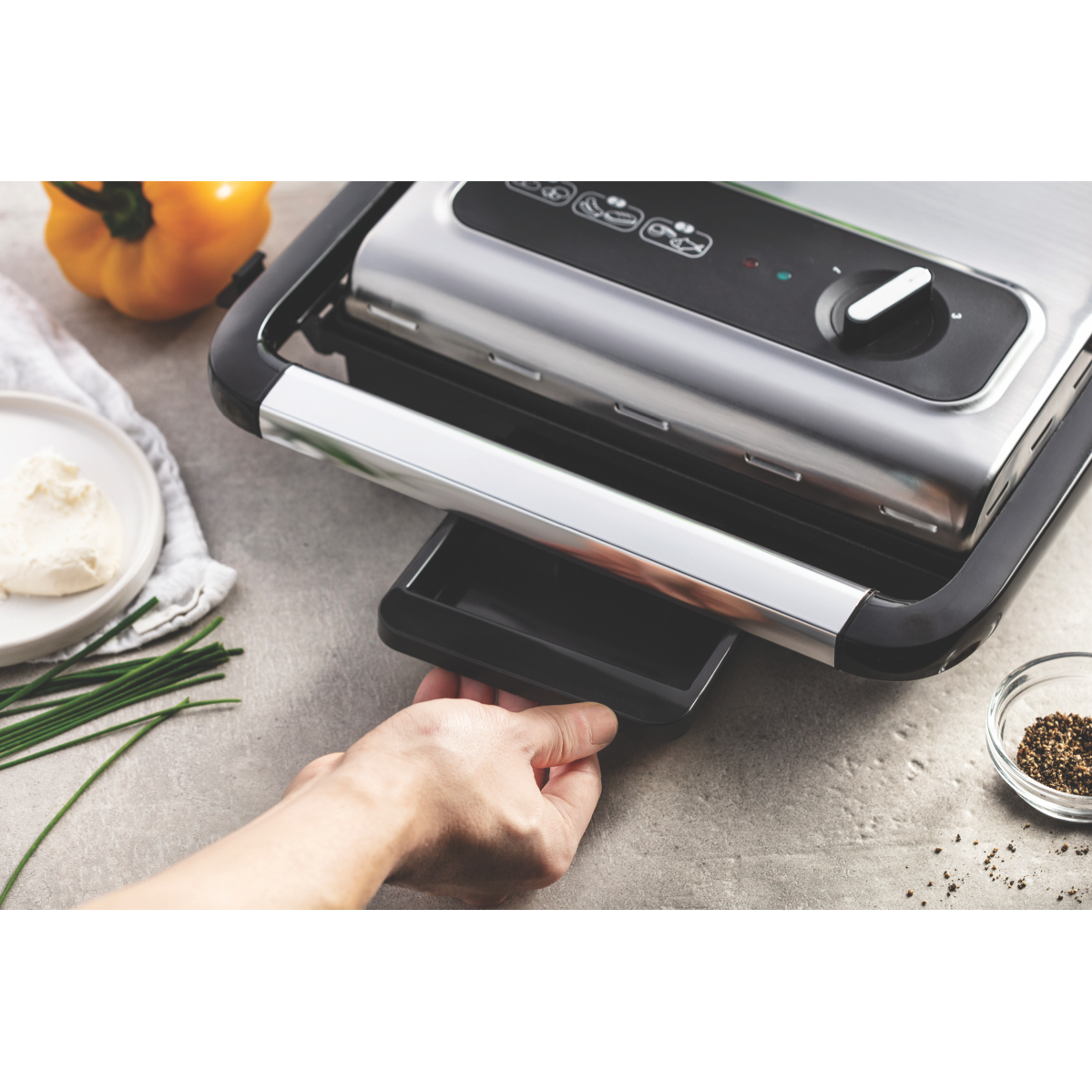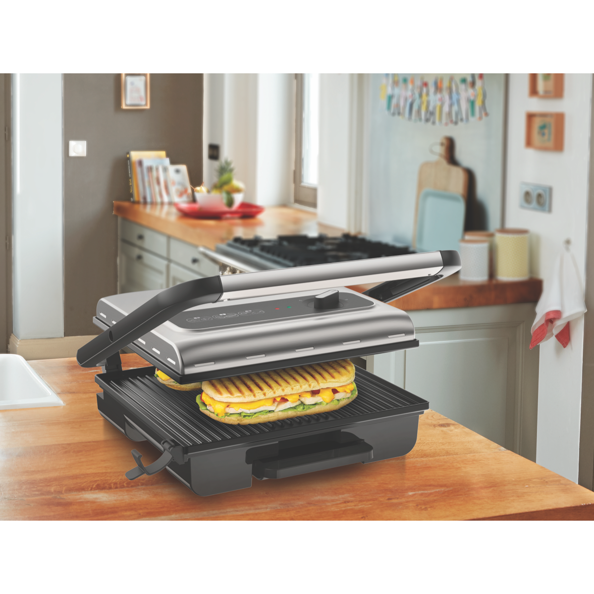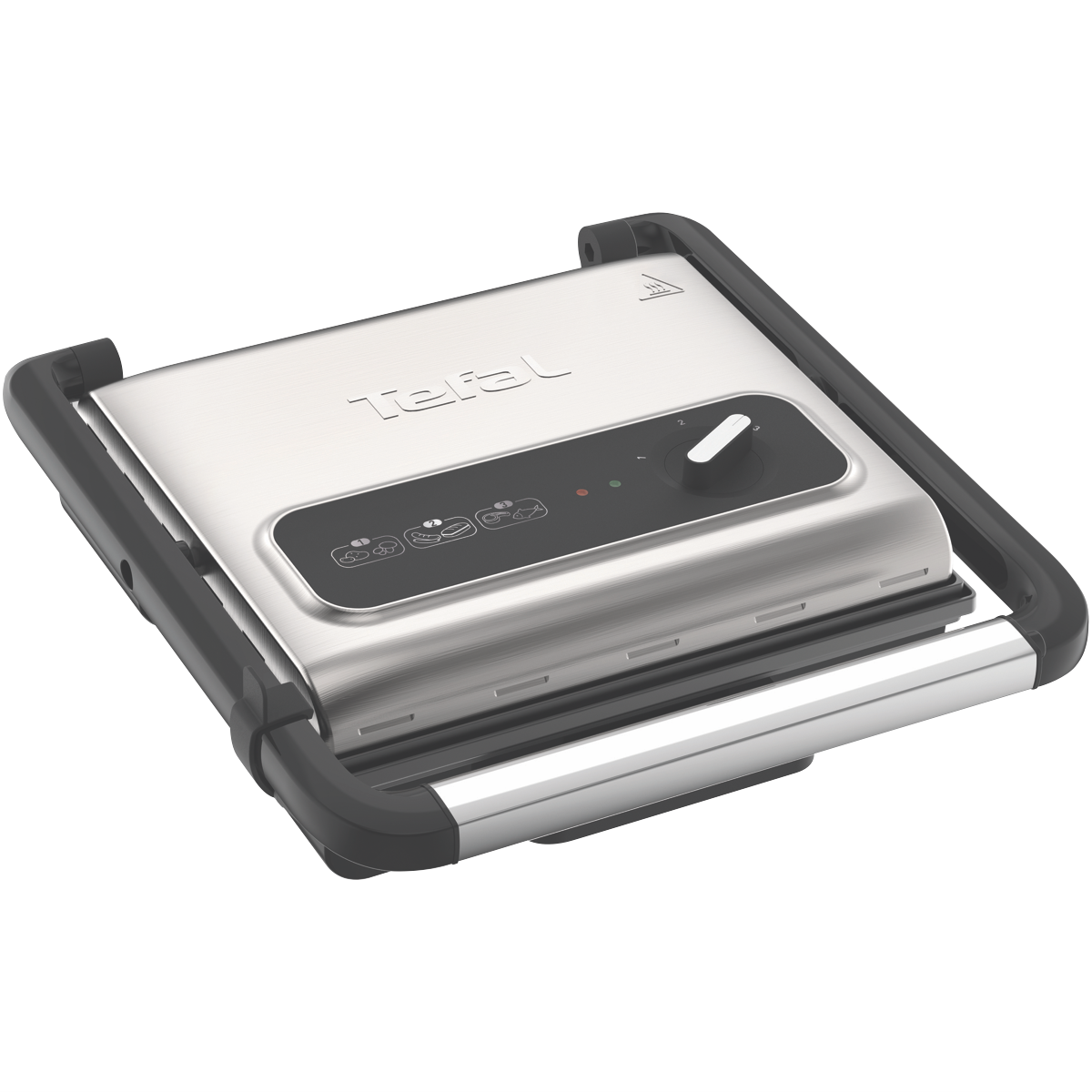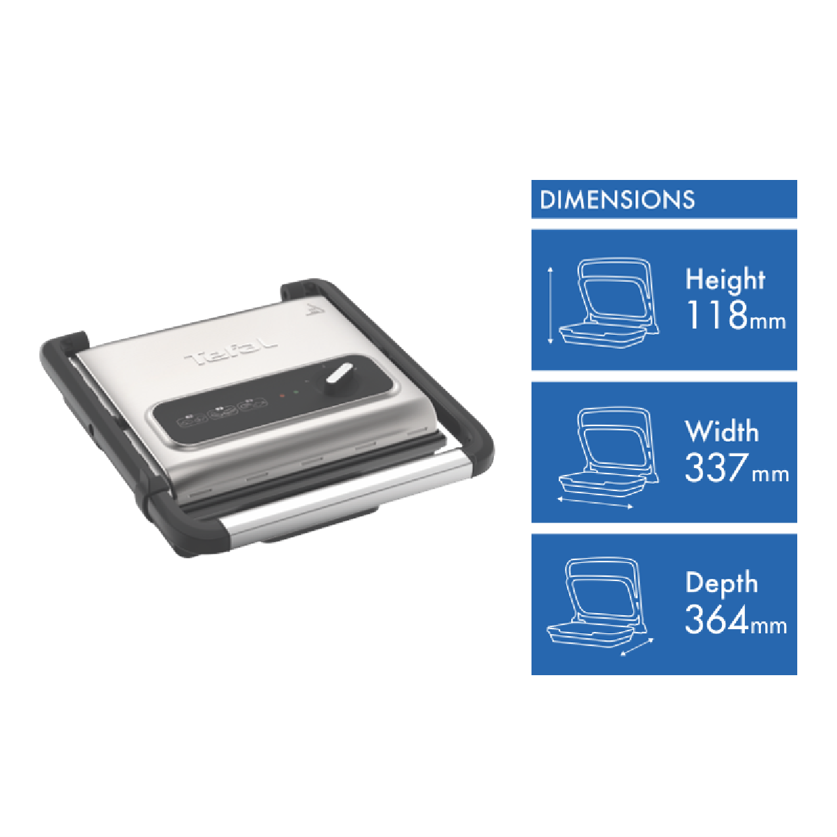 Whip up delicious paninis grill succulent meats and cook veggies to perfection with the Tefal Inicio Grill Adjust Panini Grill. This 2000-watt powerhouse features a sleek stainless steel design that looks great on your countertop. The non-stick cooking plates make flipping and cleaning a breeze while the juice tray catches any drips for mess-free grilling. With a cool-touch thermoplastic handle and handy indicator light you can cook safely and know exactly when your food is ready. Plus the vertical storage option saves space in your kitchen. Get grilling with the Tefal GC242D60 today!