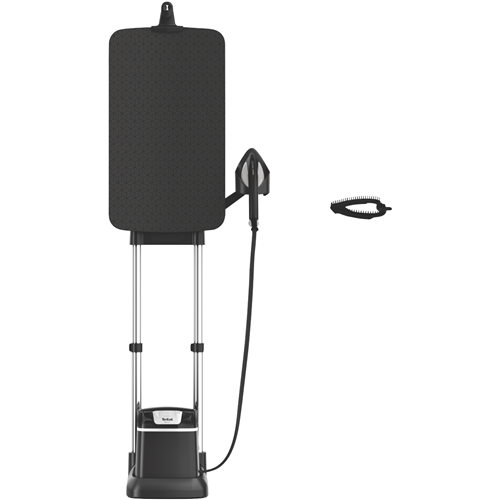 With its powerful 2400 watt motor and 70 second heat up time the Tefal IXEO Plus All In One Solution steamer is engineered to refresh garments and sanitize surfaces in a flash. This versatile garment steamer features a durable stainless steel soleplate and an integrated Smart Board with 3 positions allowing you to steam hanging clothes or flat surfaces with ease. The 35g/minute continuous steam output and 90g/minute steam shot provide intense steam penetration to remove wrinkles and odors from fabrics. Plus the integrated sanitize function eliminates 99.9% of bacteria and germs without chemicals. With a generous 1 litre removable water tank 5 bar pump pressure and auto shut off for safety this 2 year warranted steamer provides up to 60 minutes of steam time per fill. Tackle wrinkles and sanitize in style with the power and convenience of the Tefal IXEO Plus. The manufacturer's part number for this product is QT1510. Check out this innovative steam station from Tefal today
